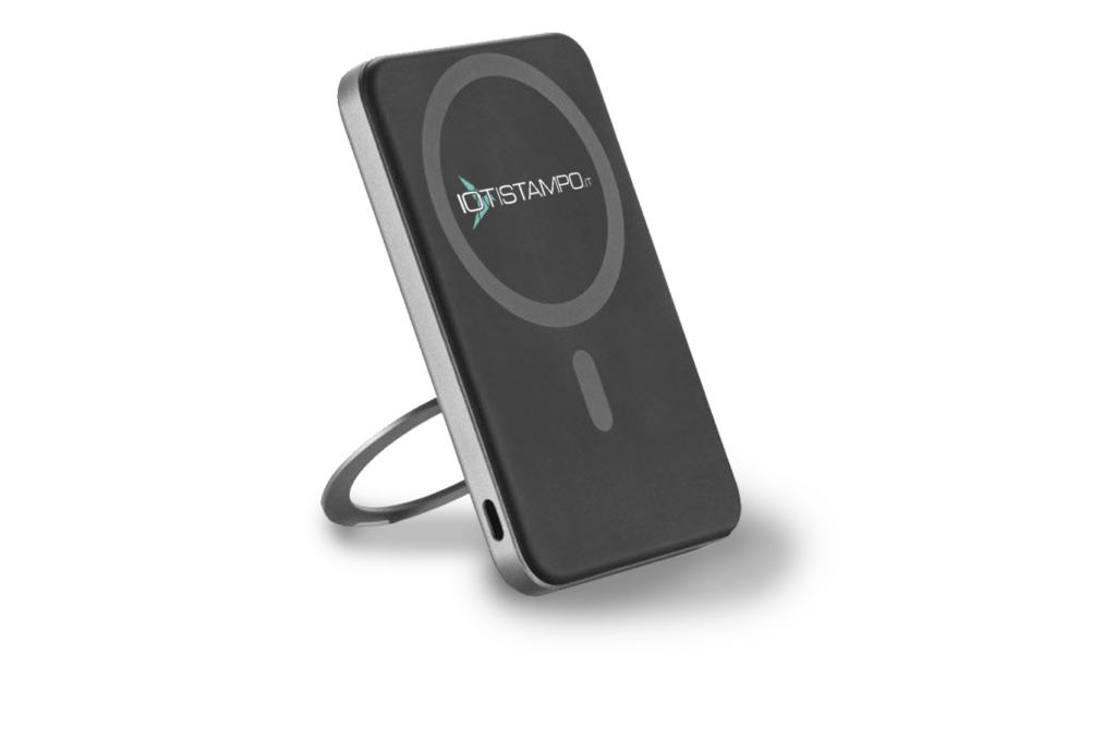 Un esempio all’avanguardia è il Power bank magnetico a 5’000 mAh dal design sottile con ricarica wireless super-veloce, che si distingue grazie all’anello di supporto che consente di adattare la posizione dello smartphone per un uso più confortevole (rotazione 360º).