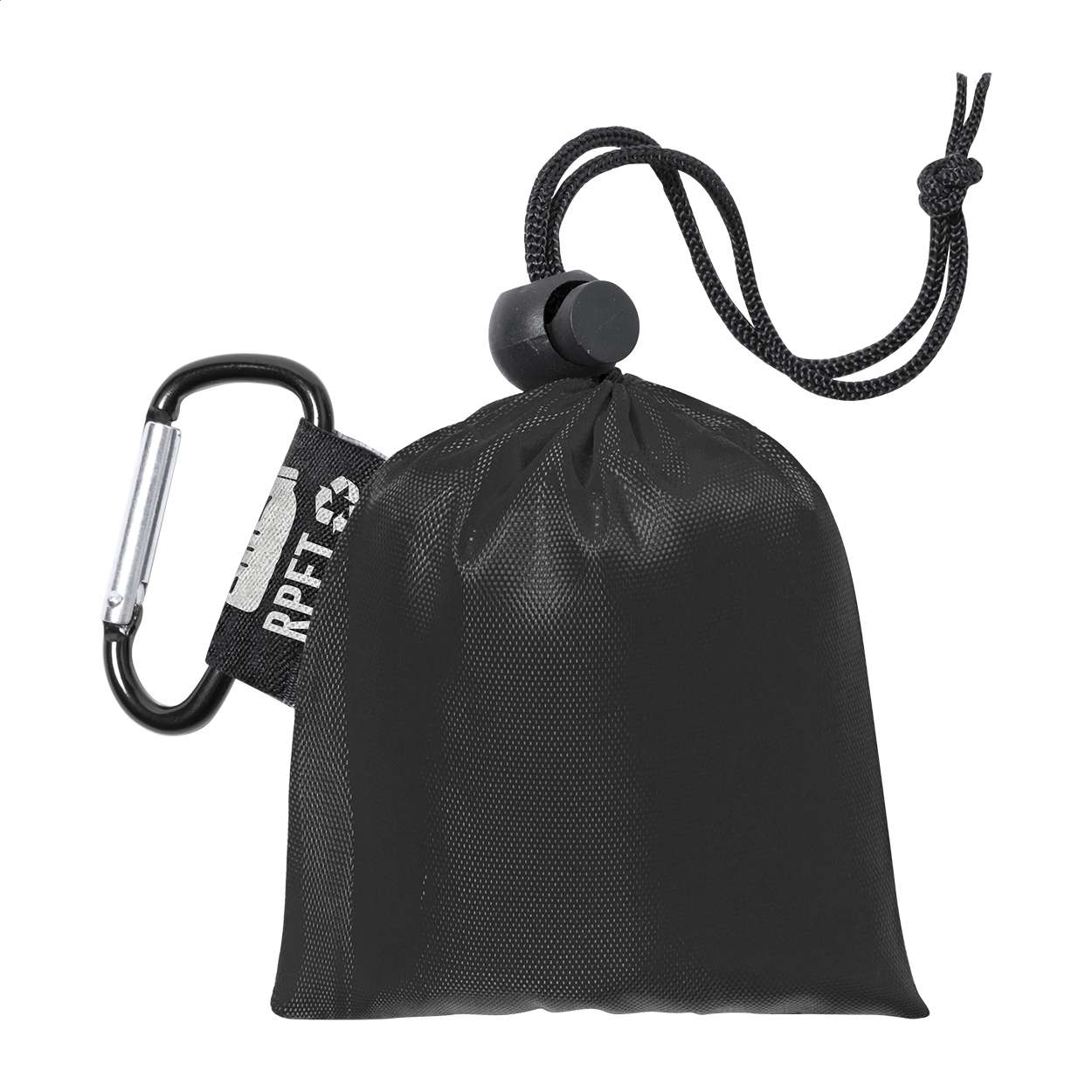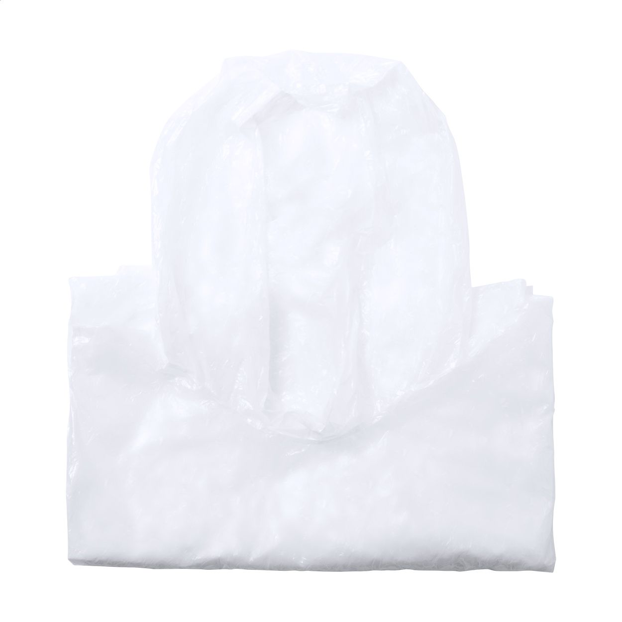 Poncho in LDPE trasparente in taglia unica per adulti. Fornito di custodia in poliestere RPET, moschettone in alluminio ed etichetta RPET.