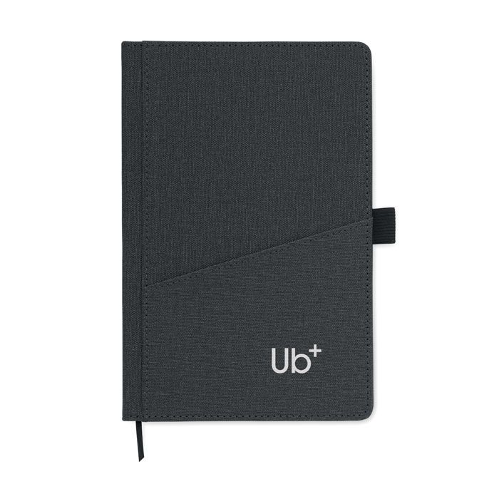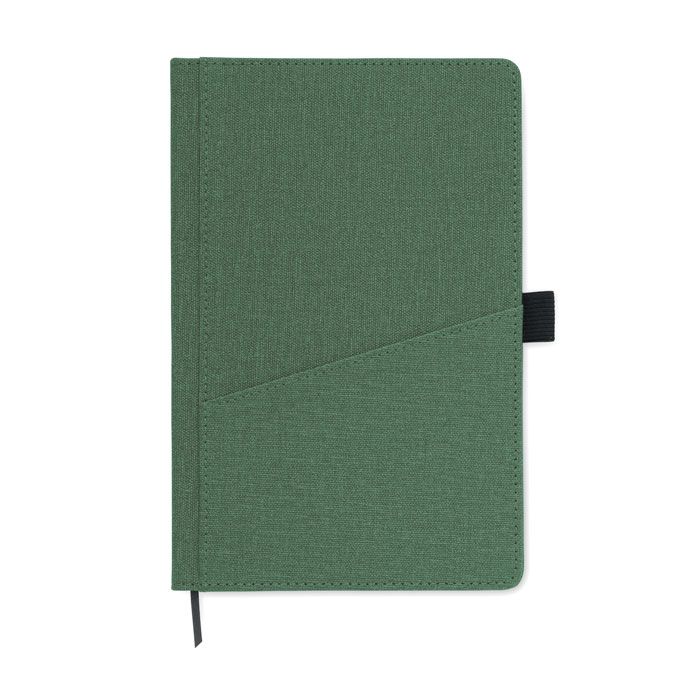 Notebook A5 con copertina rigida in PU e tasca frontale per il telefono. Rilegato con custodia. 160 pagine a righe in carta riciclata (80 fogli). Segnalibro a nastro abbinato. FSC®-certified | FSC MIX CREDIT, P7.1, FSC-C213206
