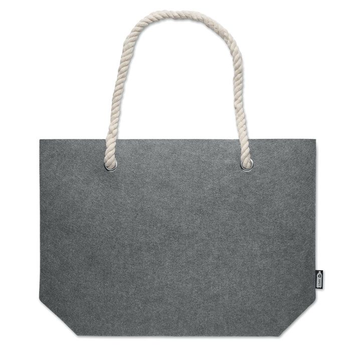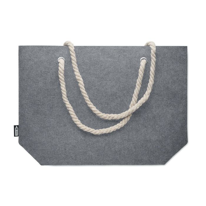 Borsa da spiaggia o shopper in feltro RPET con manico in corda. Spessore del feltro: 2 mm.