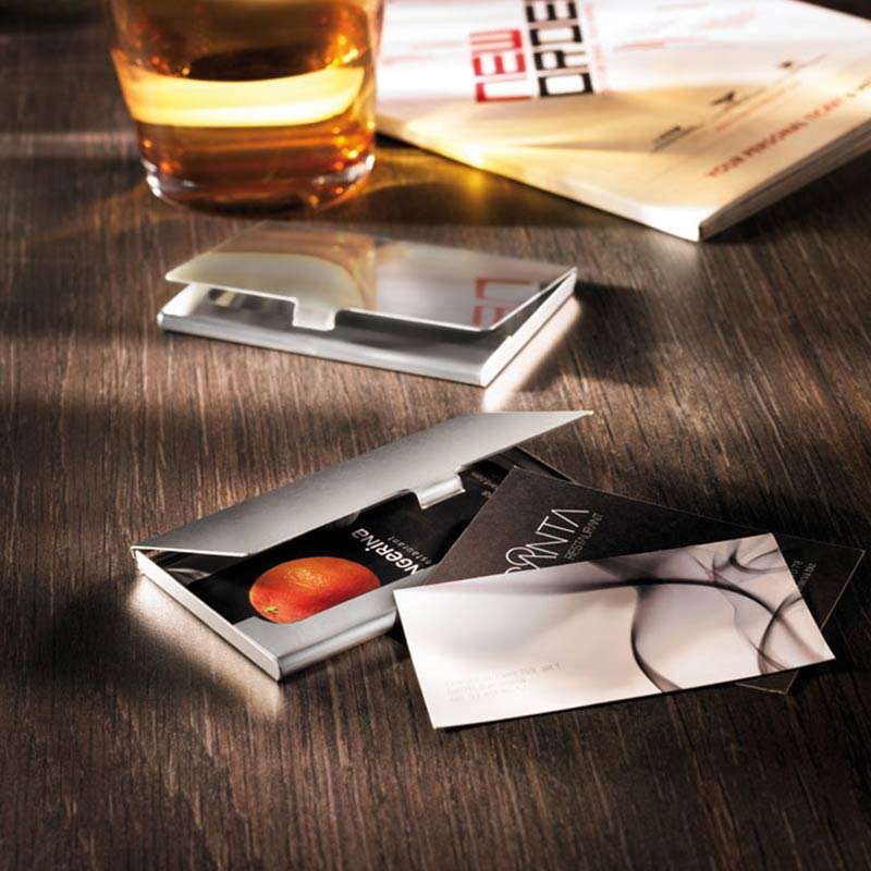 Porta biglietti da visita in alluminio.