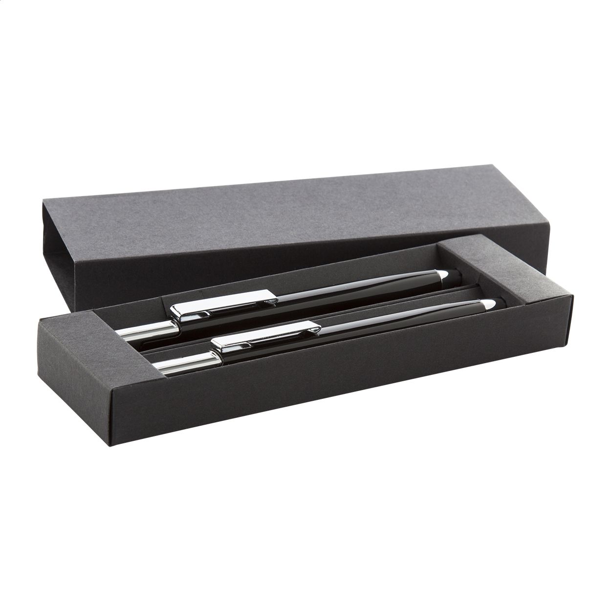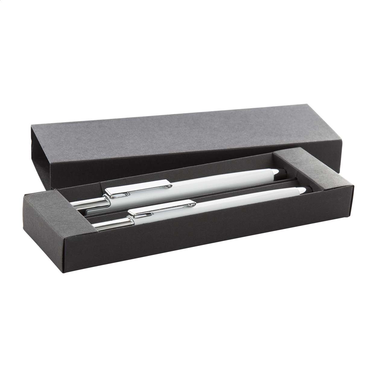 Set composto da una penna a sfera ed una matita meccanica in alluminio. Fornito in confezione regalo, refill blu e mina 0,7 mm.