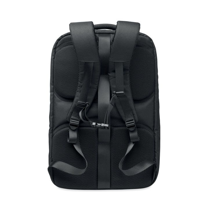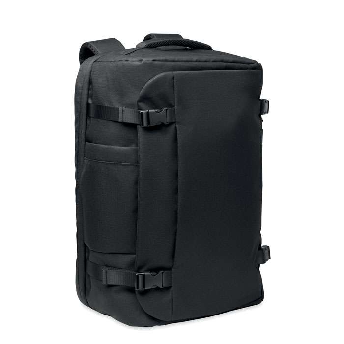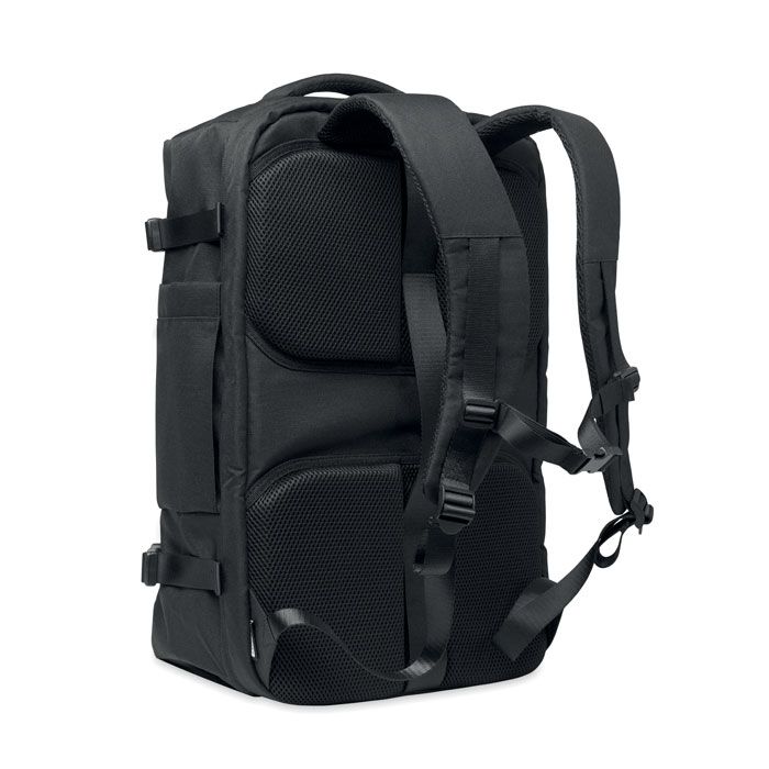Grande zaino da viaggio per laptop da 17 pollici in poliestere 600D RPET. Dispone di diversi scomparti: uno principale per i vestiti, due imbottiti per laptop e tablet e altro ancora. Pannello posteriore imbottito, tracolla e impugnatura.