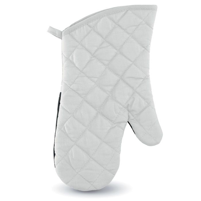 Guanto da cucina bicolore in cotone e con un lato in gomma. EN 407.