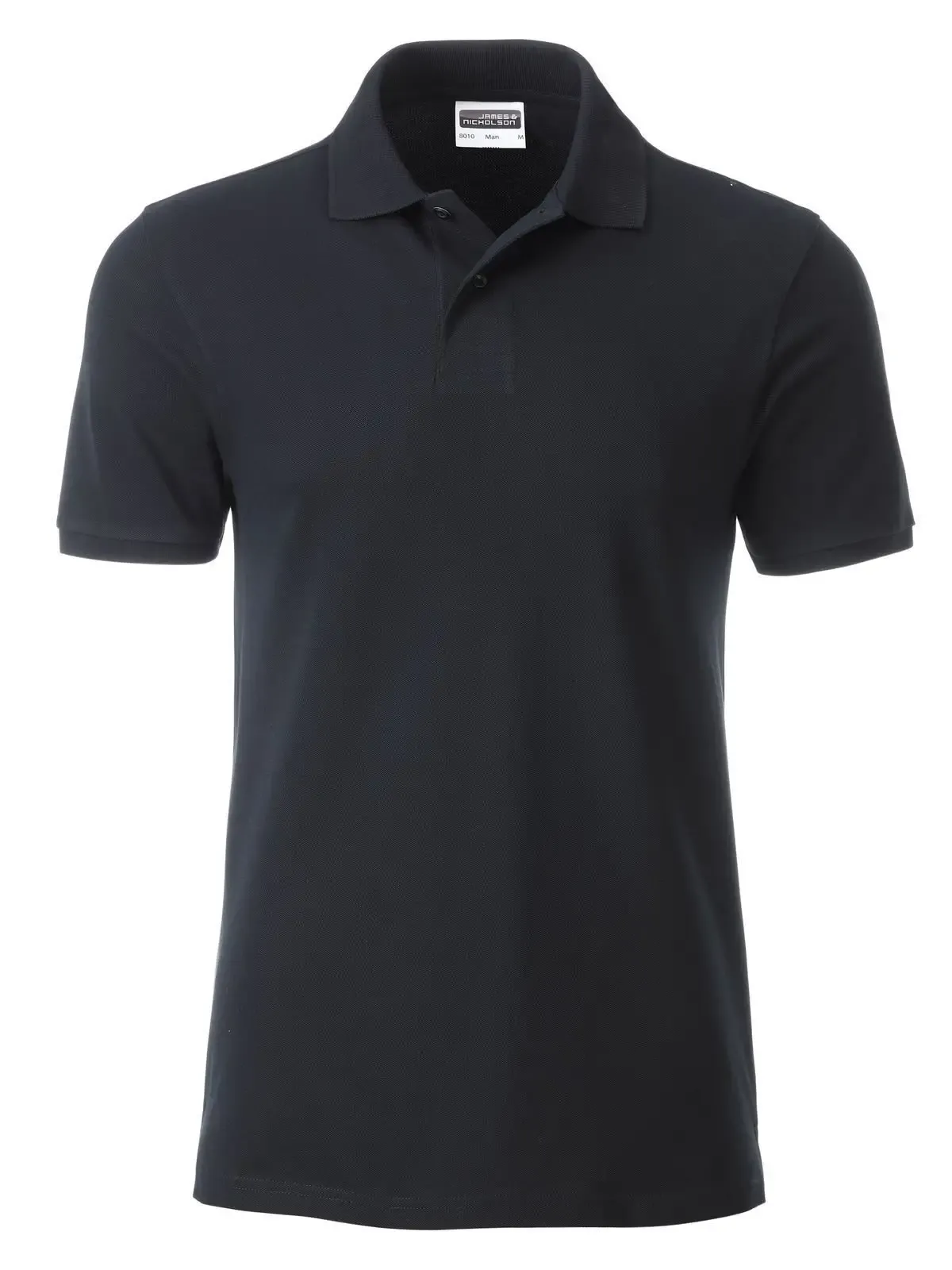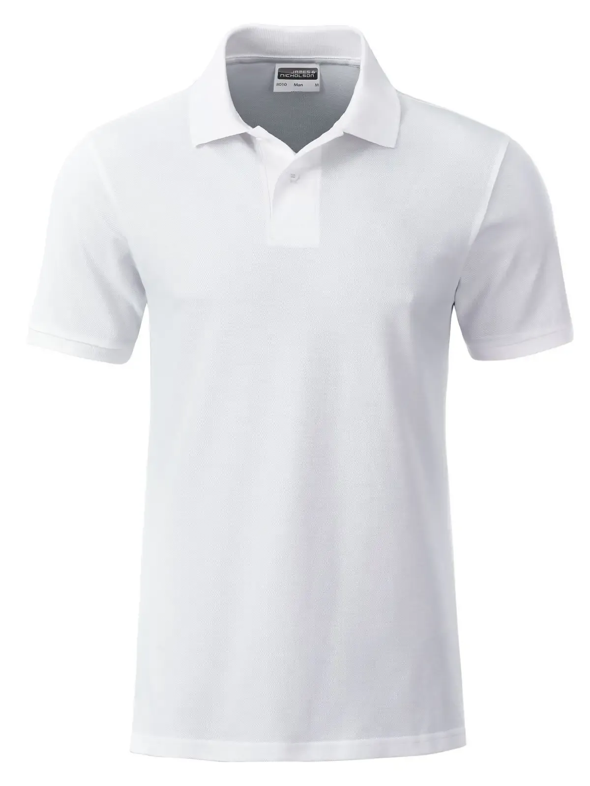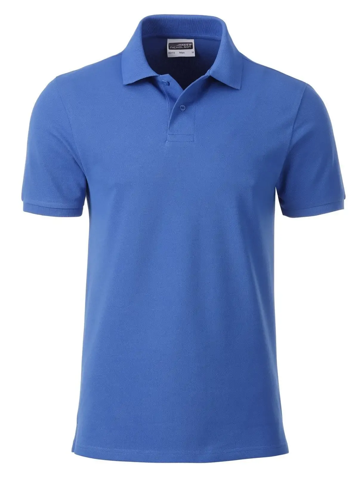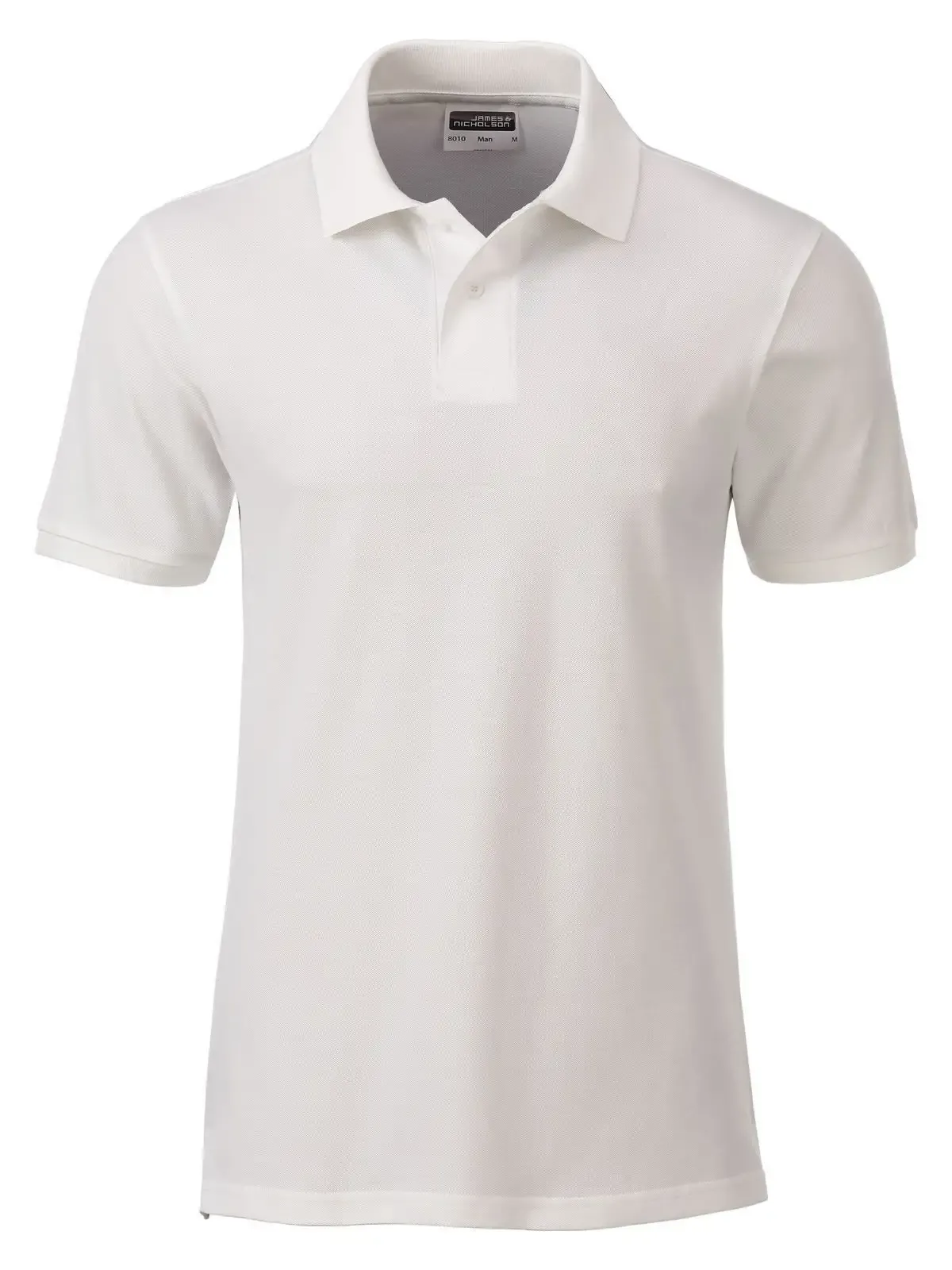 100% cotone organico piqué. Polo classica da uomo, collo e polsini lavorati a maglia, 2 bottoni tono su tono, spacchetti laterali, etichetta removibile .