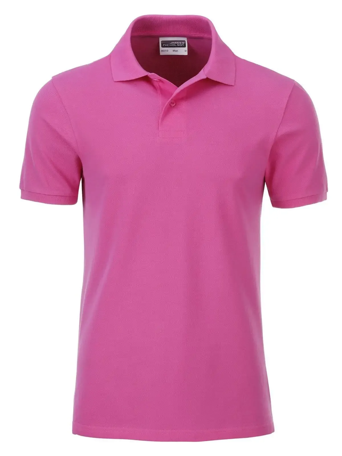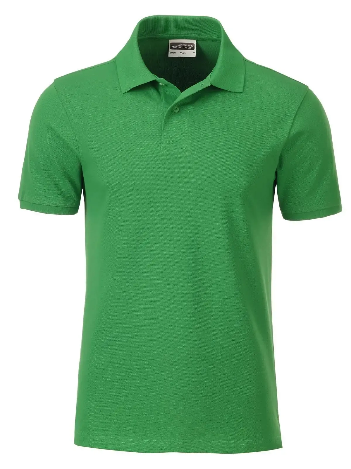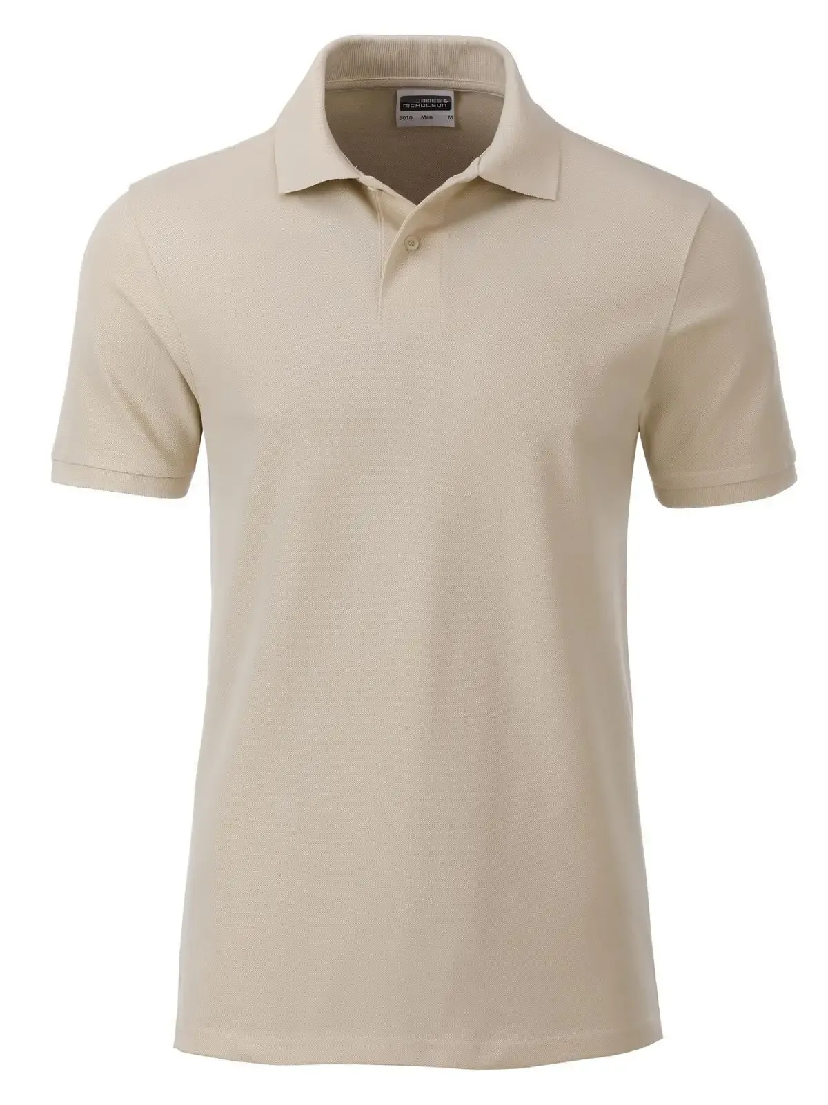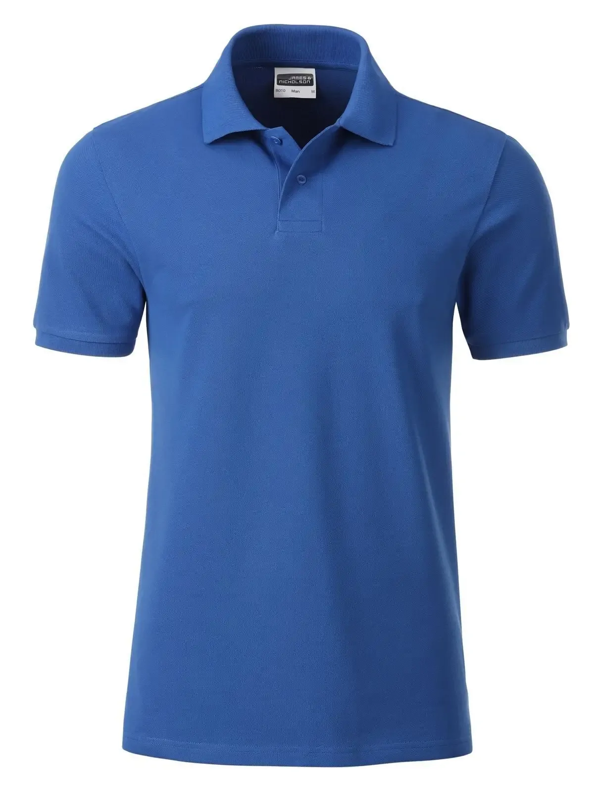 100% cotone organico piqué. Polo classica da uomo, collo e polsini lavorati a maglia, 2 bottoni tono su tono, spacchetti laterali, etichetta removibile .
