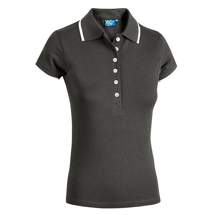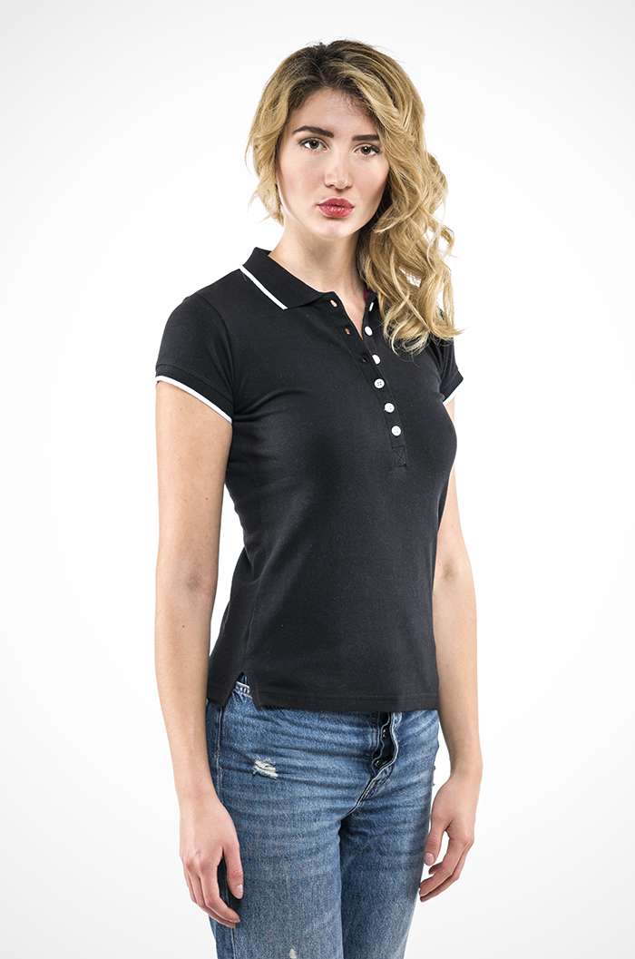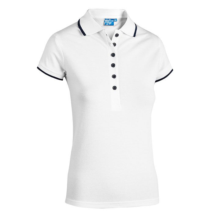 95% cotone, 5% spandex, 185 g/m2, s, bordo manica a coste, riga in contrasto sui bordi, chiusura del colletto con 6 bottoni, etichetta staccabile