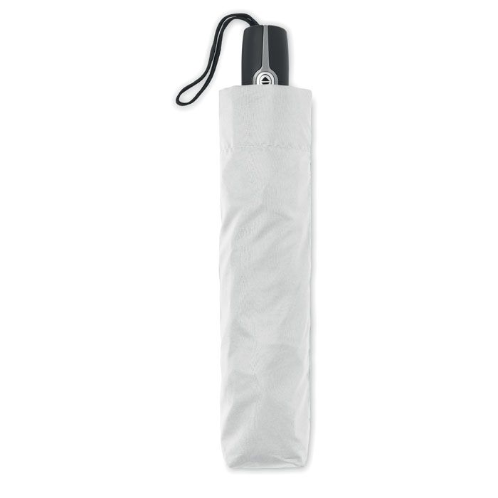 Ombrello antivento da 27 pollici a 3 pieghe con apertura/chiusura automatica. Materiale in pongee 190T, fusto in acciaio placcato nero. Stecche in fibra di vetro, struttura interna placcata in nero in 1 parte. Manico in PP nero con pulsante. Con custodia coordinata.