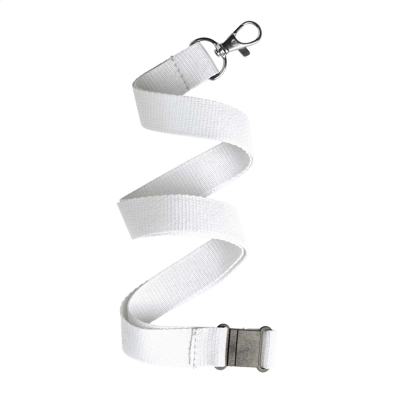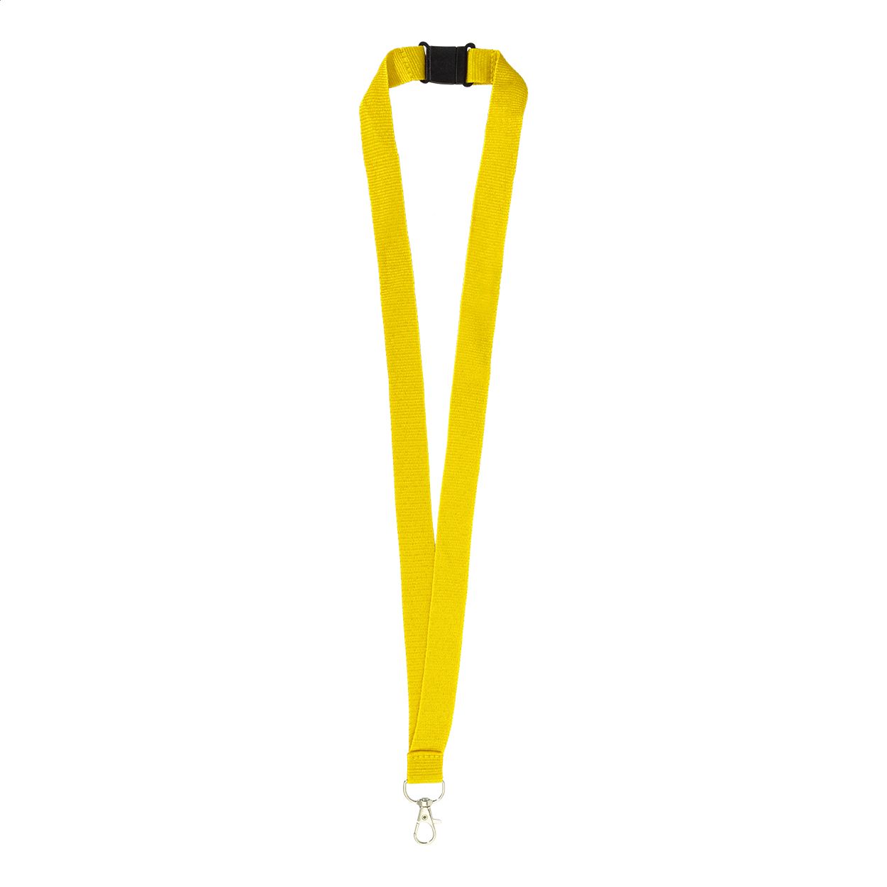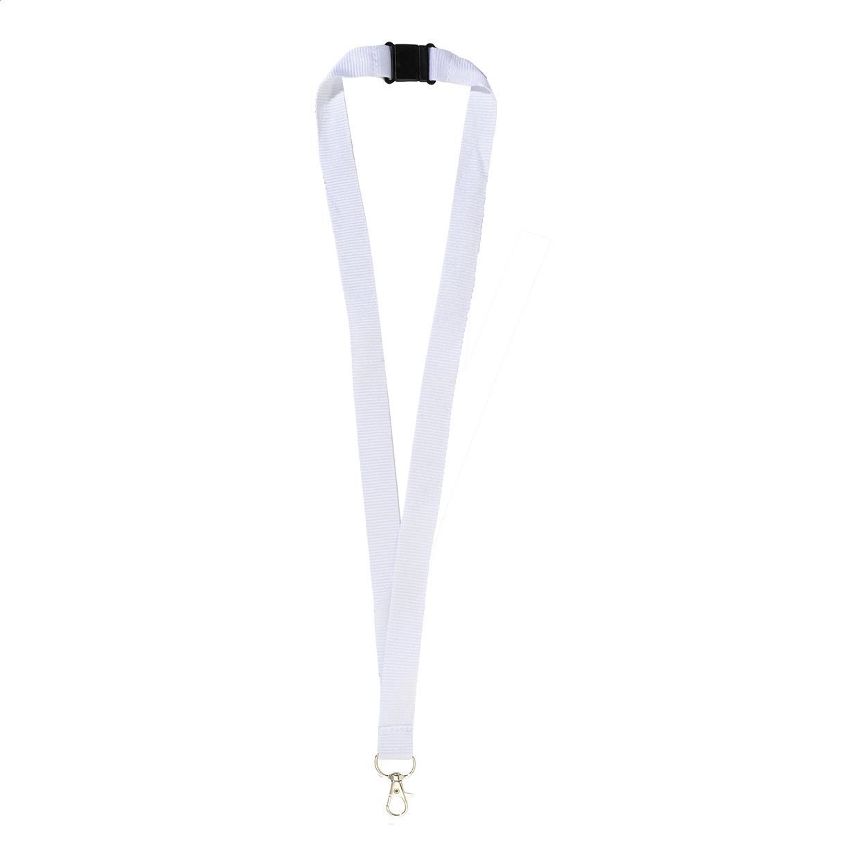Lanyard in poliestere con moschettone in metallo e fibbia di sicurezza.