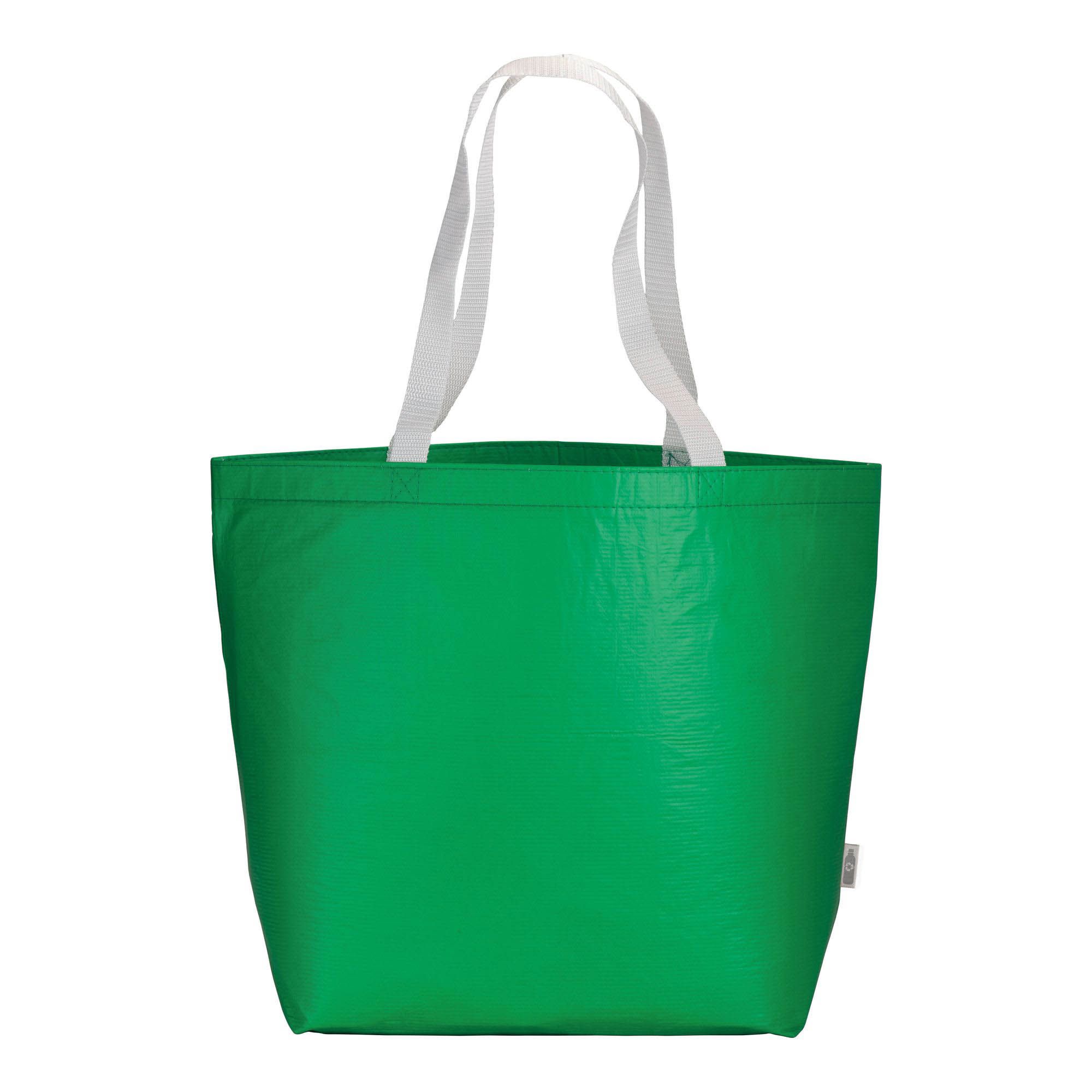 Shopper in R-PET laminato con soffietto alla base - manici lunghi in poliestere - 20119