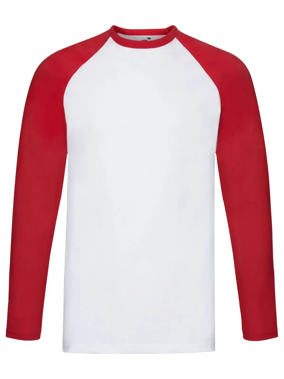 T-shirt Baseball T a manica lunga raglan e girocollo con costina - Fruit Of The Loom - FR610280