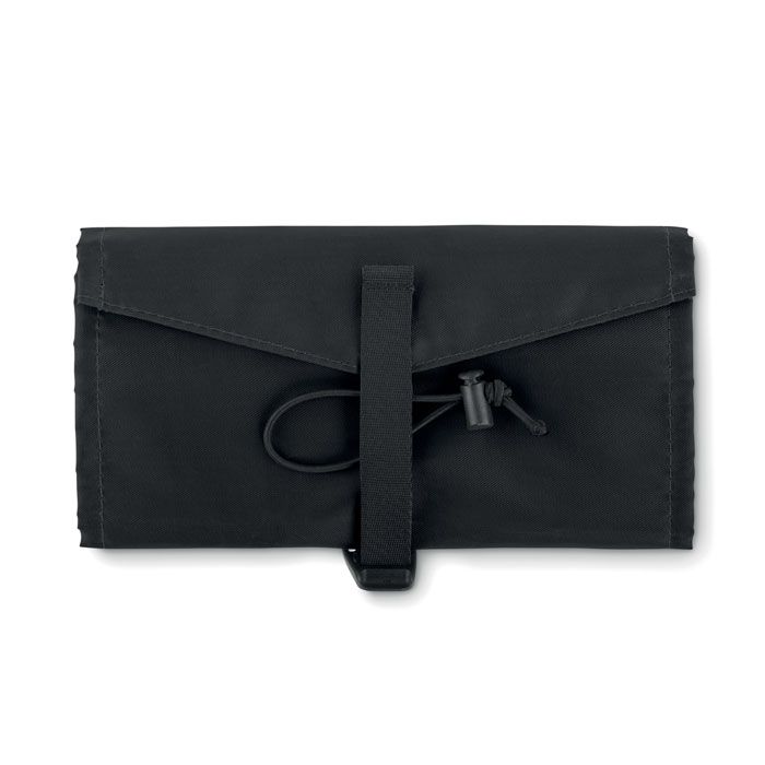 Organizzatore cavi in 210D RPET con 3 scomparti con cerniera. Questa borsa può essere utilizzata anche come porta cosmetici.