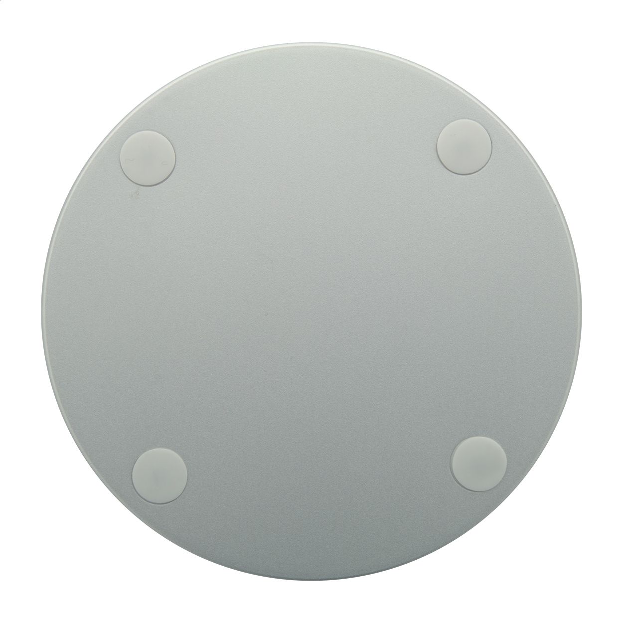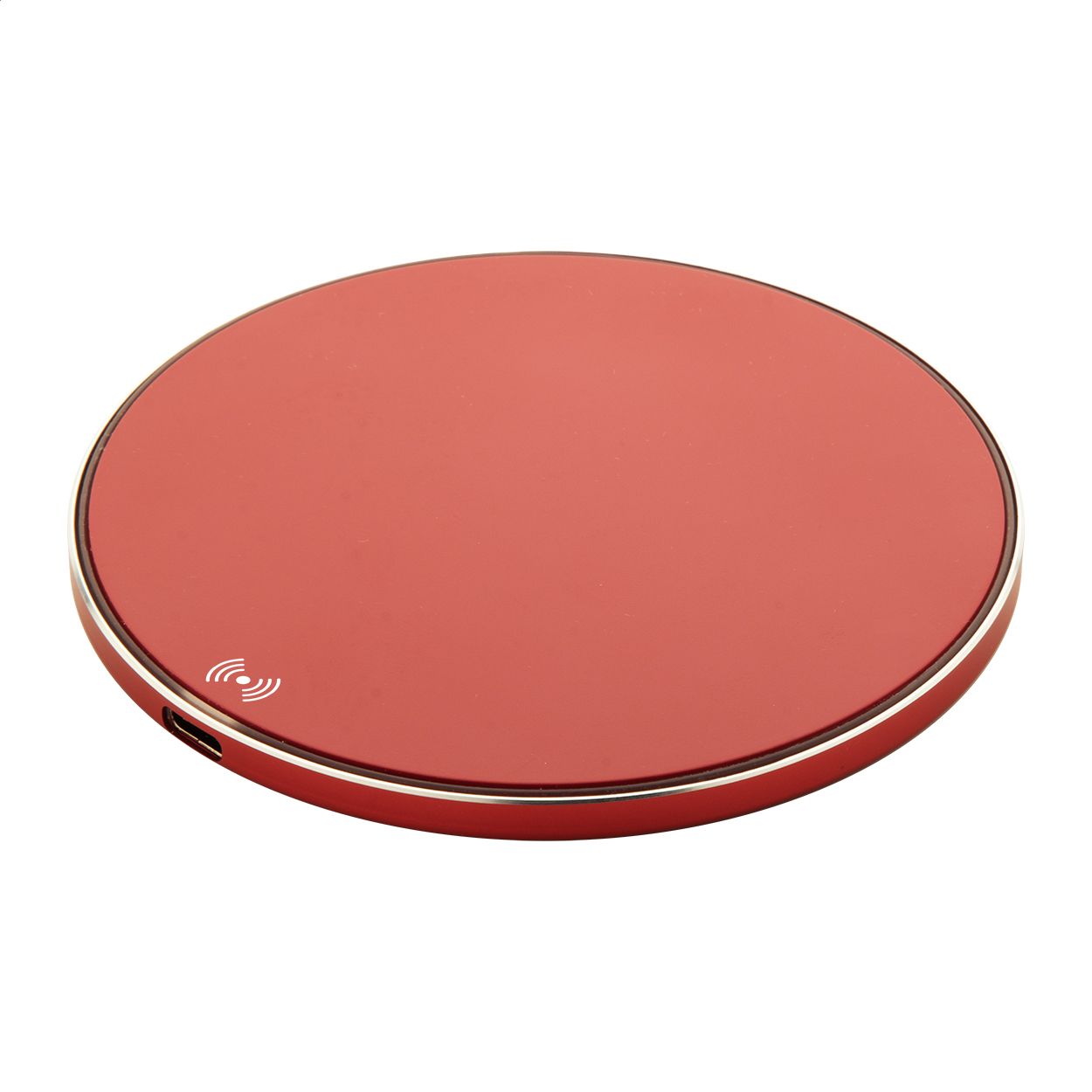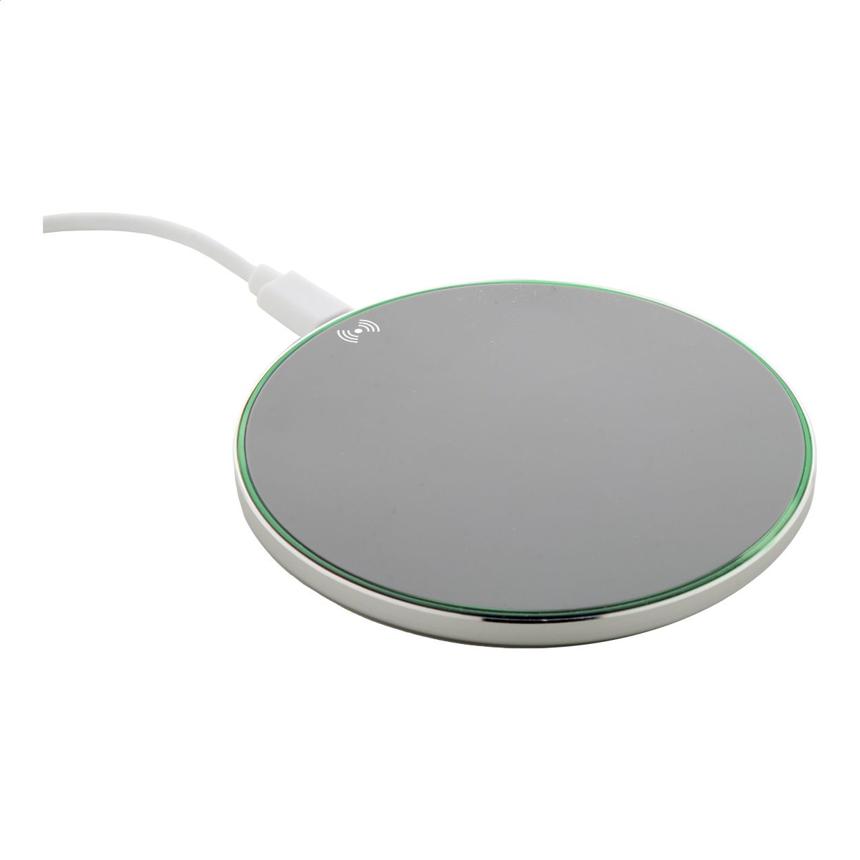 Caricatore rapido wireless in alluminio riciclato (15W) e cavo di ricarica USB incluso.