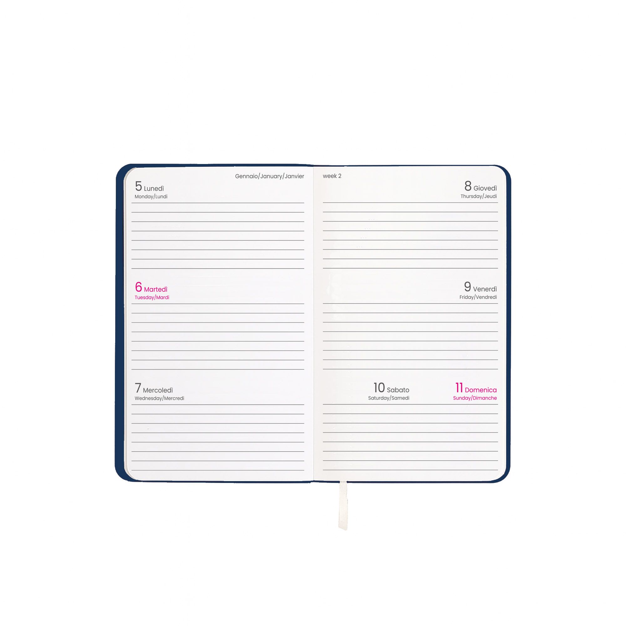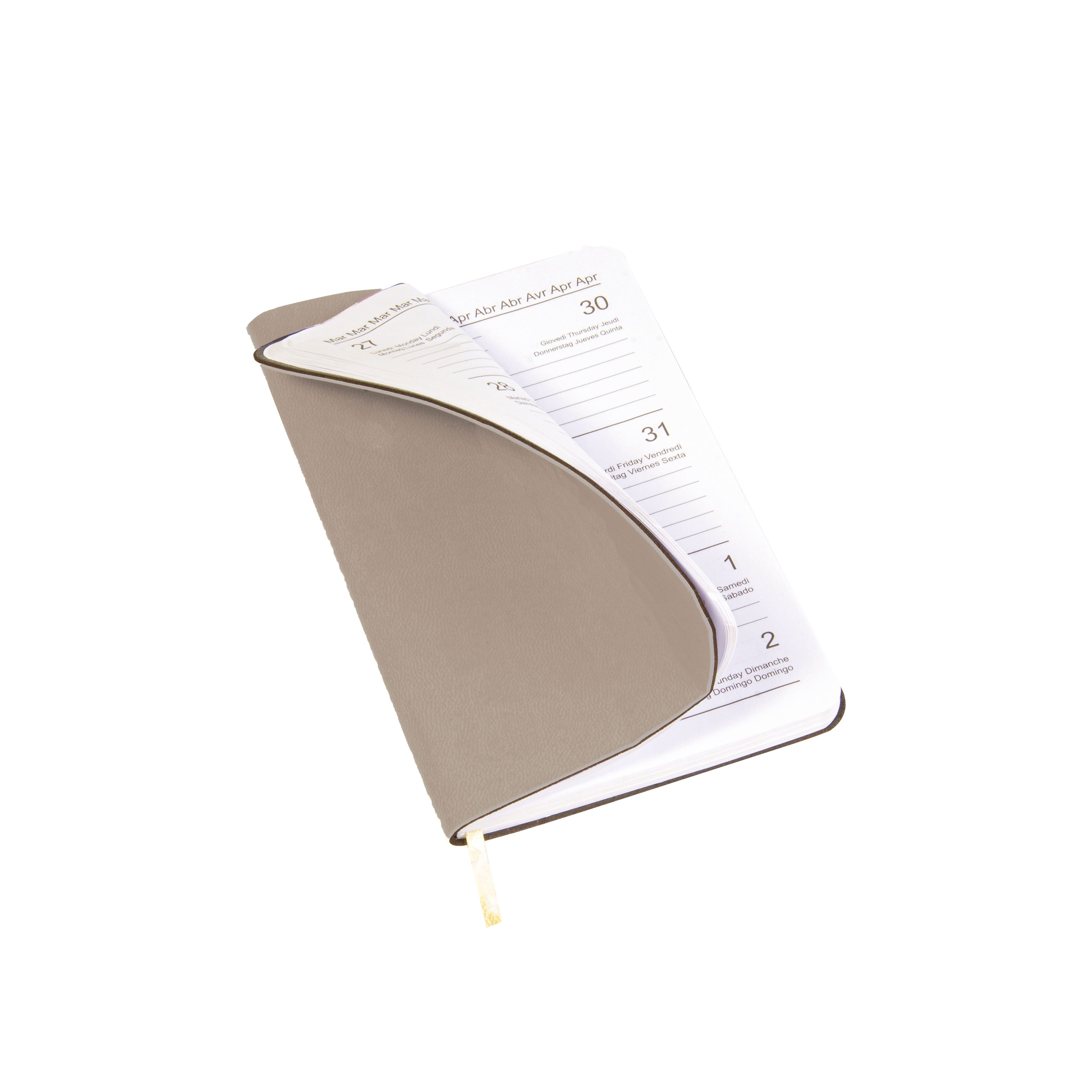Agenda tascabile settimanale 2026 con copertina flessibile in PU termovirante. 12 mesi. 64 pagine in carta bianca da 70 g/m2. Copertina personalizzabile. Scatola opzionale 23794