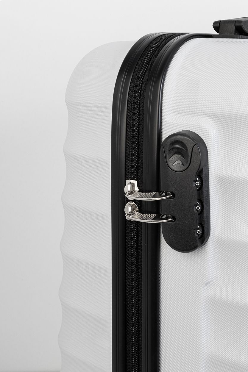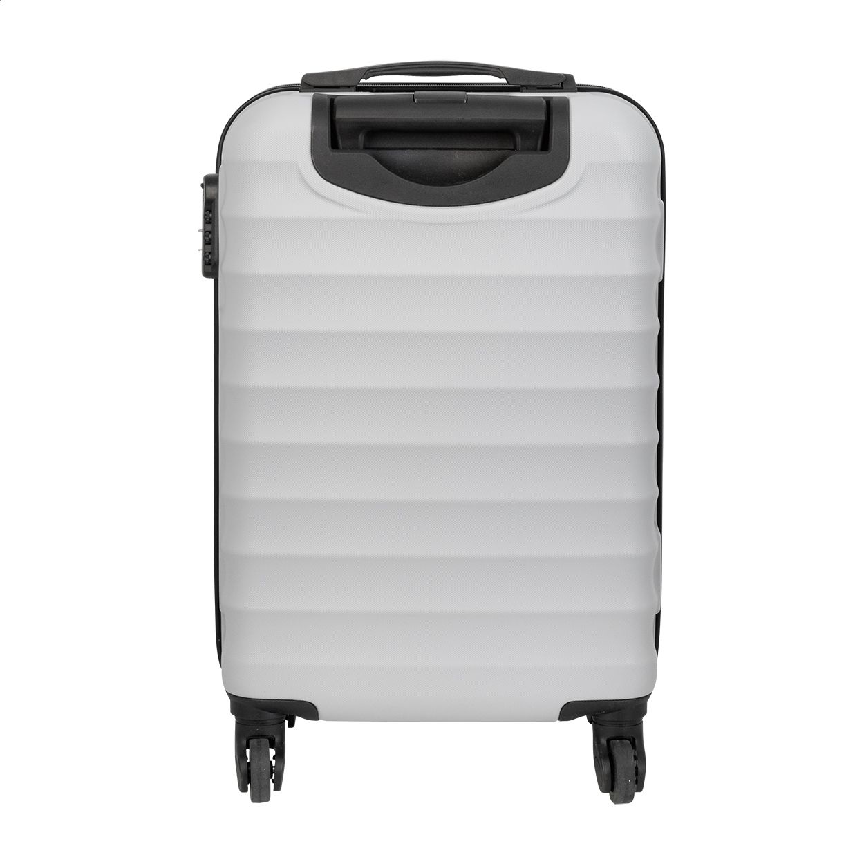 Trolley rigido da 20 pollici in RPET con 4 ruote, maniglia telescopica e chiusura a combinazione. Con rivestimento interno in RPET e cinghie di fissaggio elastiche. Con piastra metallica per l'incisione del logo