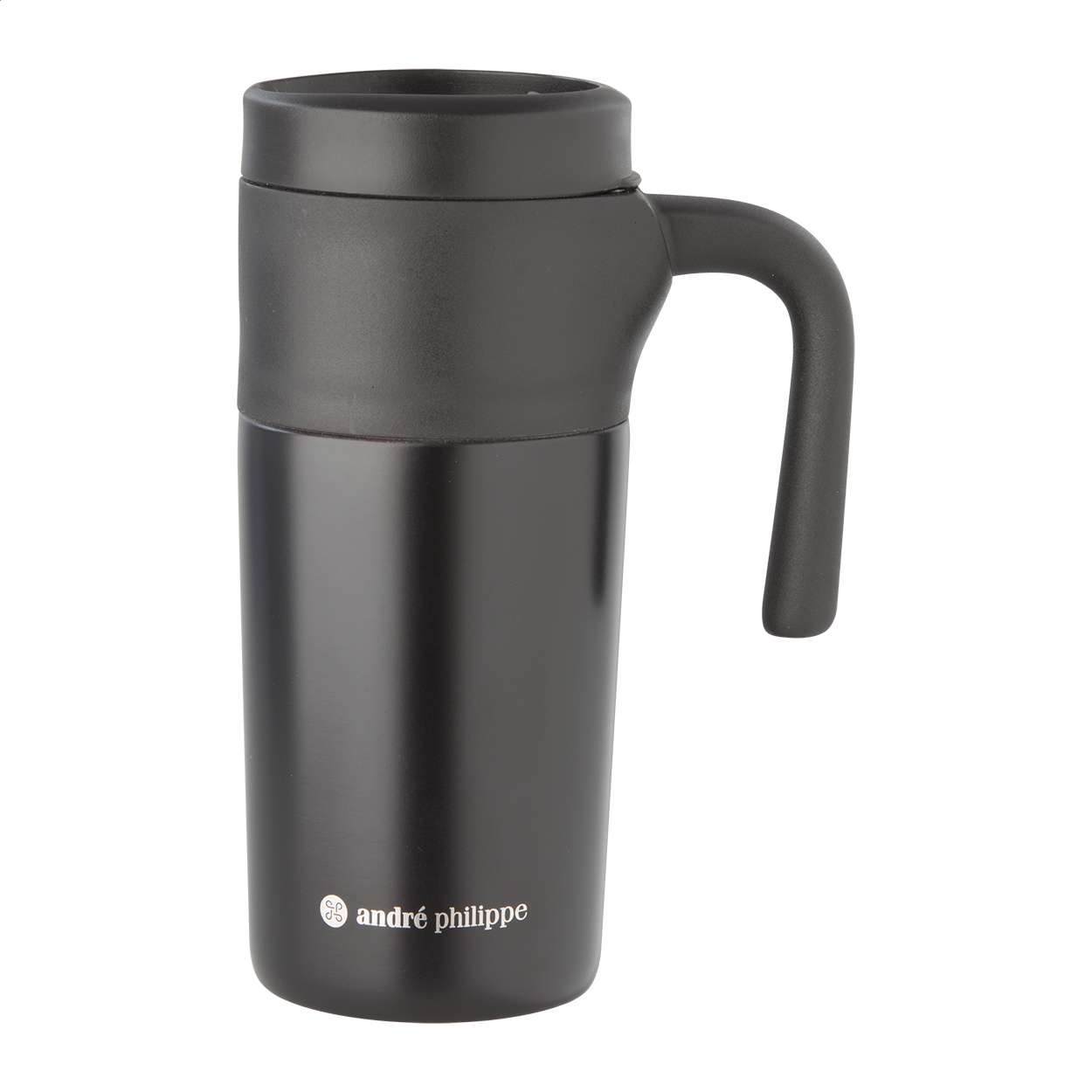 Tazza mug termica da 330ml. in acciaio a parete singola con tappo e manico in plastica. Fornita in scatola regalo. Prodotto a marchio André Philippe.