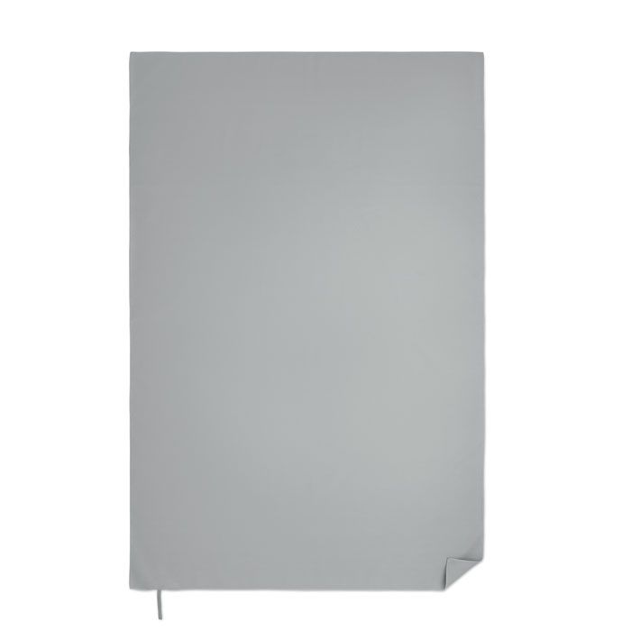 Asciugamano in microfibra realizzato al 90% in poliestere e al 10% in poliammide con anello elastico per appenderlo. Leggero e ad asciugatura rapida.