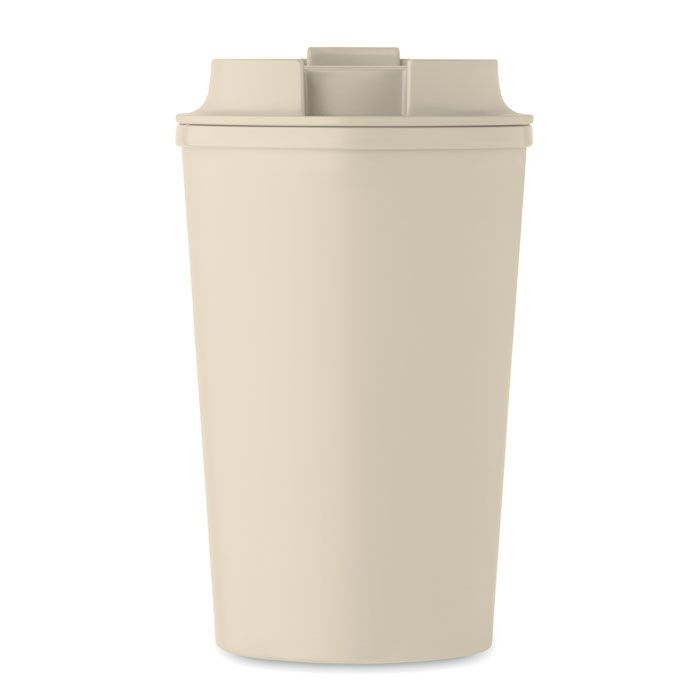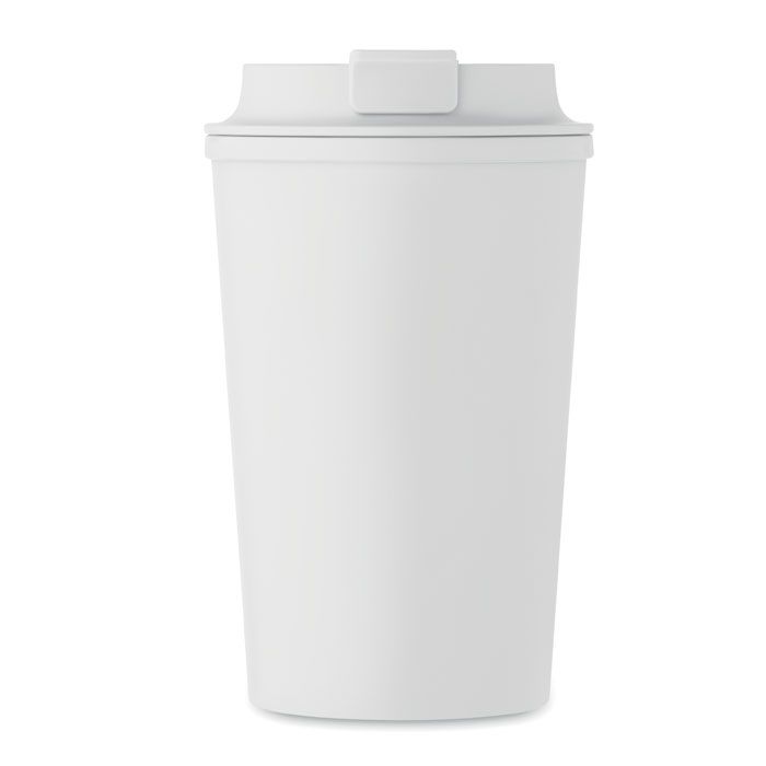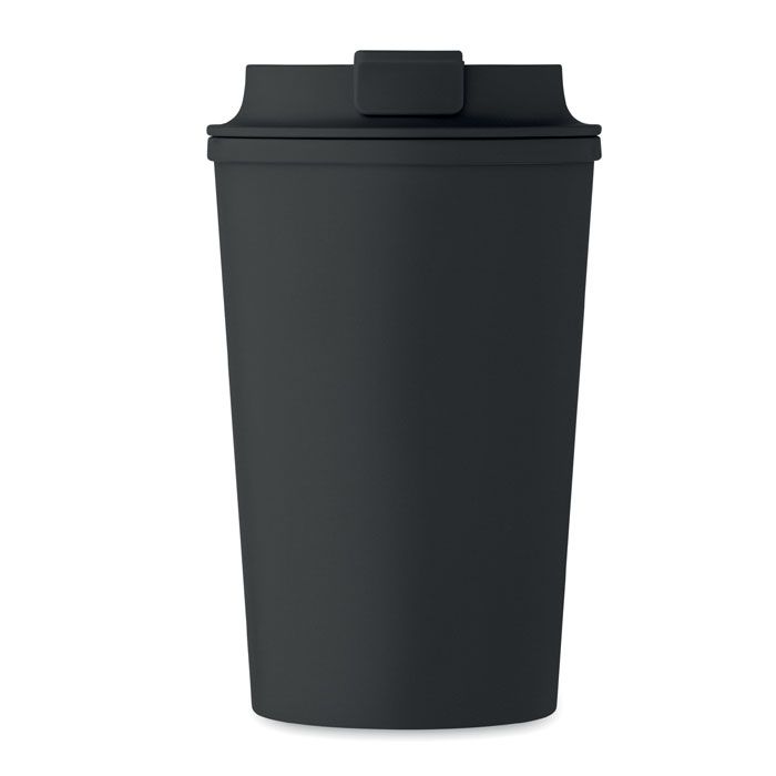 Bicchiere doppio strato in PLA con coperchio in PP e TPR interno. Capacità: 350 ml.