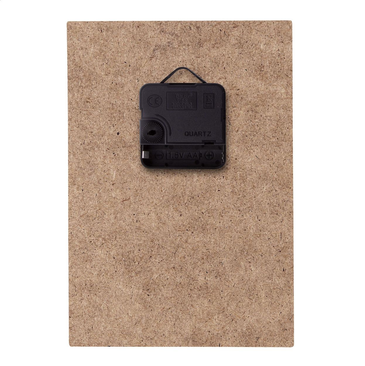 Orologio da parete di forma rettangolare in legno HDF con grafica personalizzata. Funziona con 1 batteria AA, non fornita. MOQ: 50 pz.