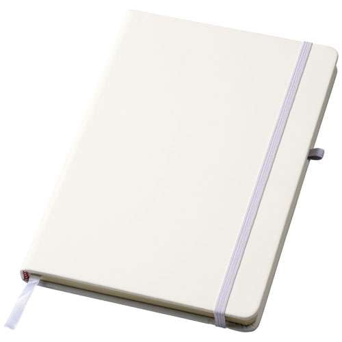 Notebook A5 con chiusura elastica in colore coordinato, anello portapenna e nastro segnapagina. Composto da 96 fogli di carta a righe da 70 g/m2. Copertina in similpelle soft feel.