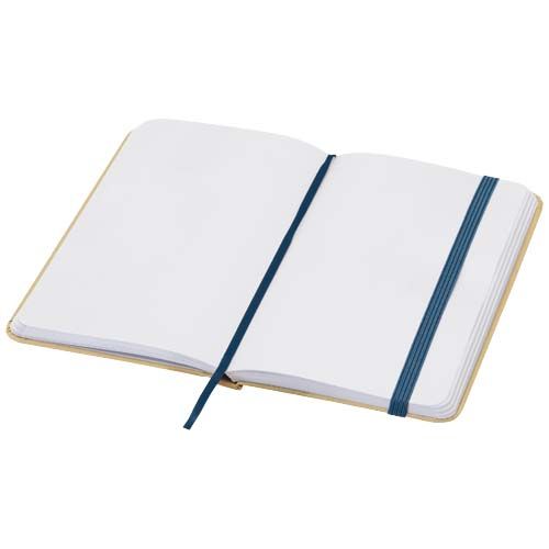 Il blocco note con copertina rigida in cartone riciclato formato A6 Reed con angoli arrotondati non è solo un un pratico accessorio per l'ufficio, ma anche un'ottima occasione per promuovere il marchio. Il blocco note presenta 96 fogli bianchi di carta da 70 g/m² e una copertina morbida. Dispone di chiusura elastica e nastro segnalibro.