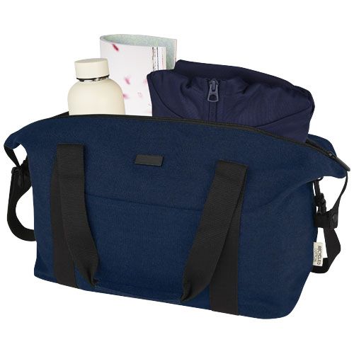 Realizzato in canvas riciclato GRS e fodera in RPET, il borsone sportivo Joey da 25 litri presenta uno spazioso scomparto principale con cerniera e una tasca interna con zip per conservare gli oggetti al sicuro. Dispone inoltre di una tasca anteriore aperta e un'altra tasca posteriore con cinturino per trolley. Può essere trasportato con le maniglie rinforzate in tessuto oppure con la tracolla rimovibile e regolabile per il massimo comfort. La placca decorativa in metallo è in grado di far risaltare il tuo logo grazie alla sottile finitura opaca