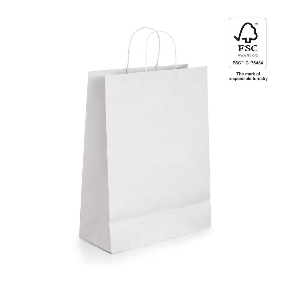 Sacchetto in carta kraft (90 g/m²) con maniglia ritorta. Prodotto in Europa. Questo prodotto è realizzato con materiale certificato FSC™ e altri materiali controllati. 240 x 310 x 90 mm