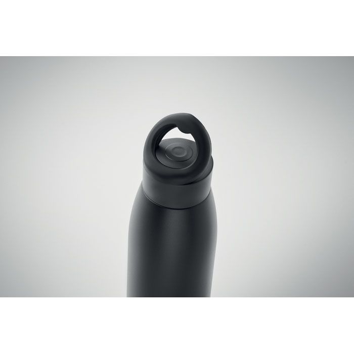 Bottiglia doppio strato in acciaio inox riciclato (90% riciclato e 10% acciaio inox) coperchio ad anello in morbido silicone. Agitando la bottiglia, la temperatura della superficie cambia in caldo o freddo, in base al liquido contenuto. 400 ml.