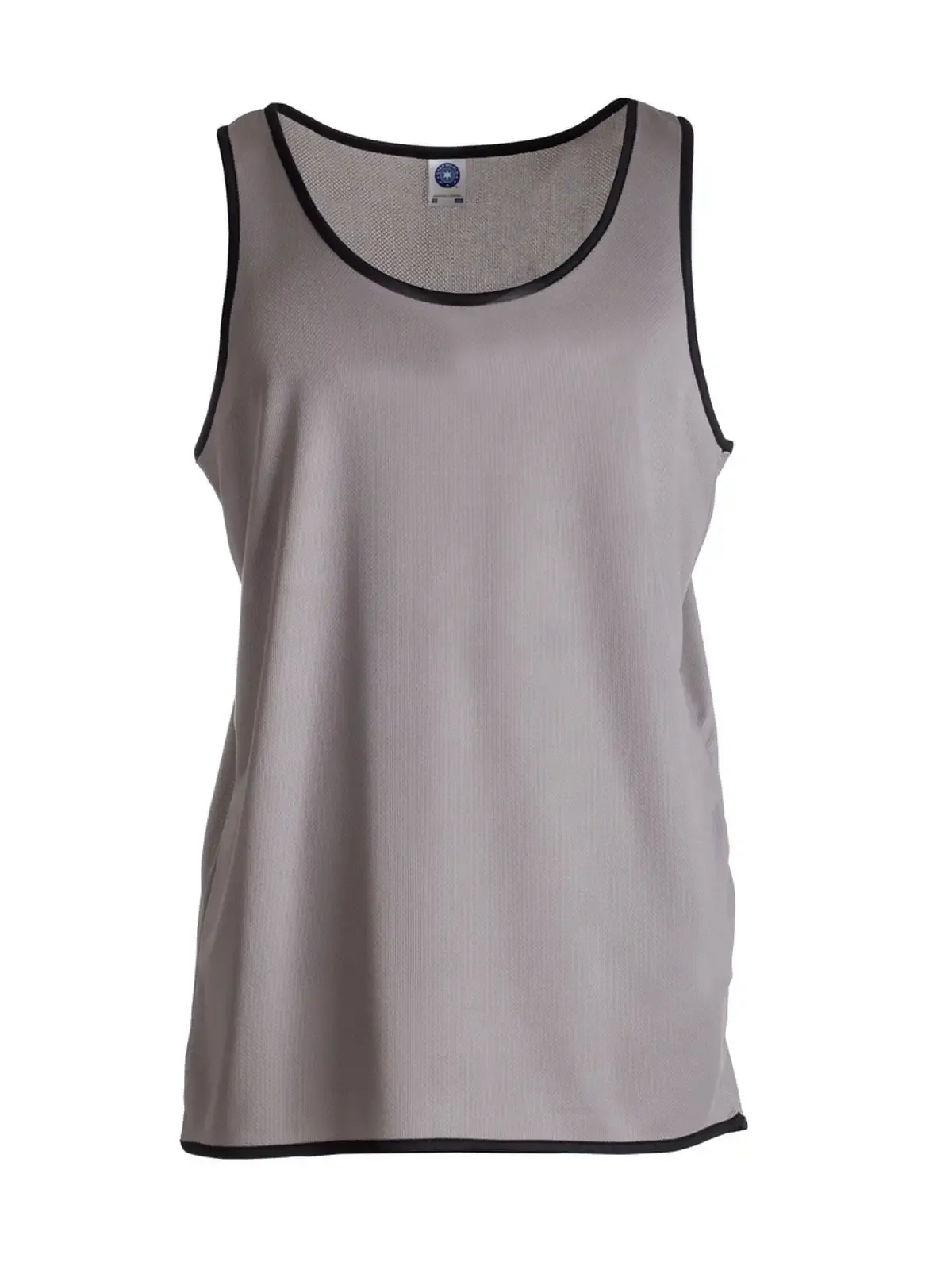100% poliestere testurizzato. Canotta sportiva, profondo girocollo, regolazione dell'umidità, asciugatura rapida, orlo su collo, giromanica e orlo inferiore di colore contrastante, struttura con cuciture laterali.