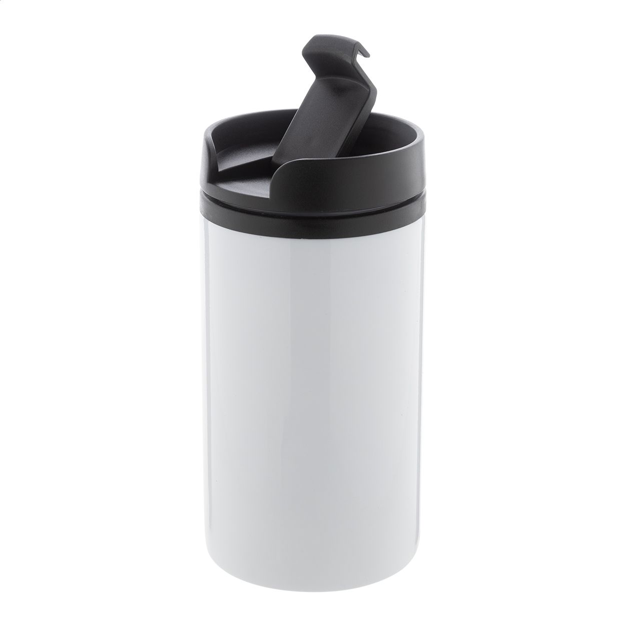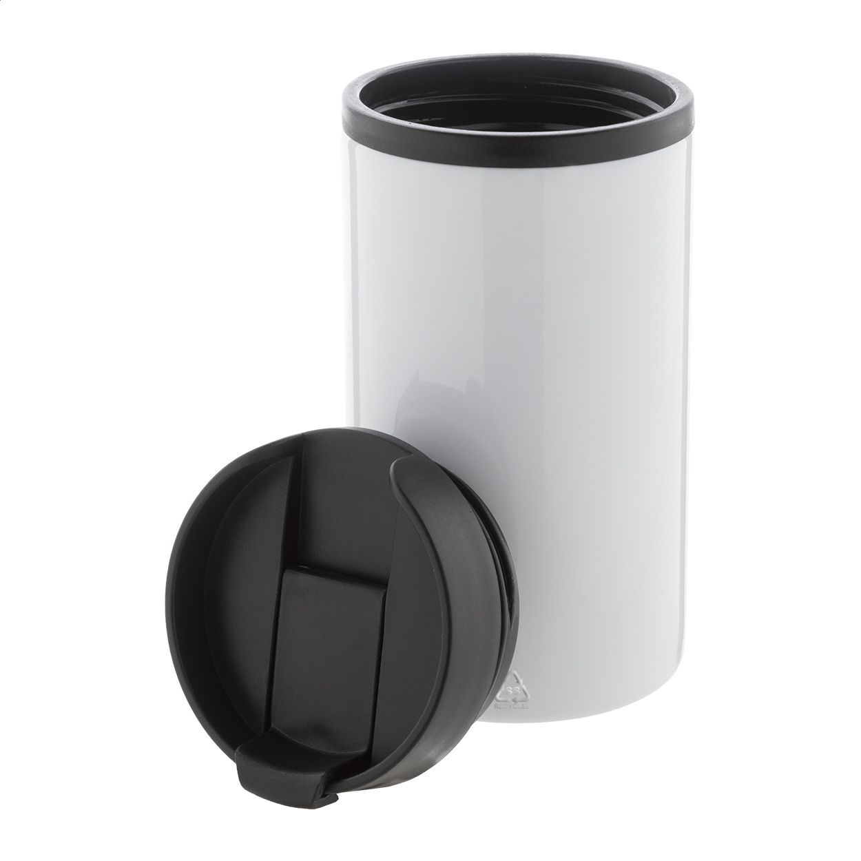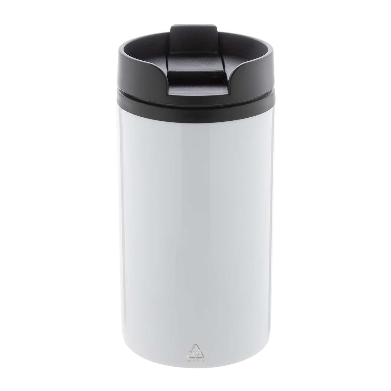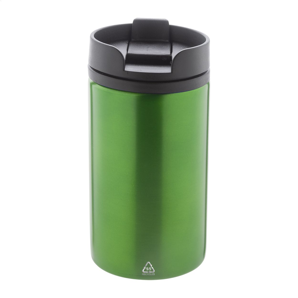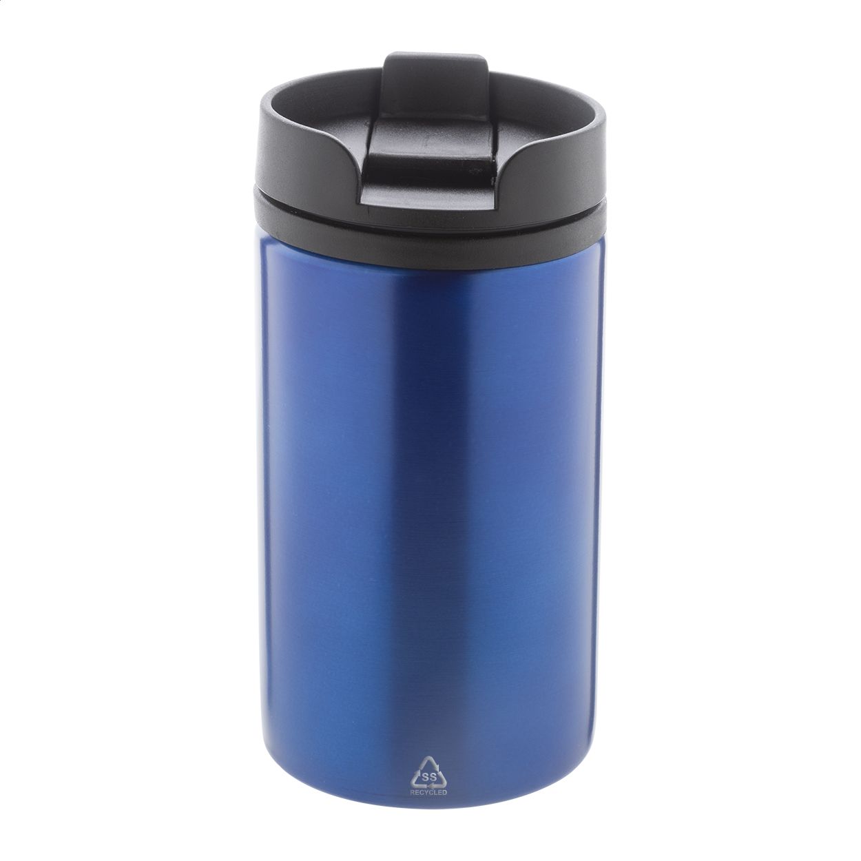 Bicchiere termico a doppia parete in acciaio riciclato da 250ml. con interno e coperchio erogatorein plastica PP.