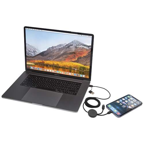 Il cavo Citala 5-in-1 per la sincronizzazione dei dati e la ricarica rapida da 27 W è realizzato in plastica riciclata. Il cavo è caratterizzato da connettori di ingresso USB-A e di Tipo-C abbinati a un connettore di uscita combinata di Tipo-C e Lightning/Micro USB. La connessione da USB-A a USB-C fornisce una potenza massima di 27 W, mentre tutte le altre opzioni di connessione offrono una potenza massima di 15 W. Compatibile sia con CarPlay che con Android Auto. Sia a casa, in ufficio o durante gli spostamenti, il cavo Citala offre prestazioni e stile in un unico pacchetto compatto. Lunghezza del cavo: 150 cm.