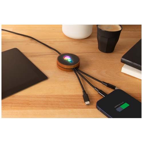 Cavo di ricarica 5 in 1 in rPET riciclato con logo luminoso e stazione di ricarica da 10 W SCX.design C40 - 1PX073