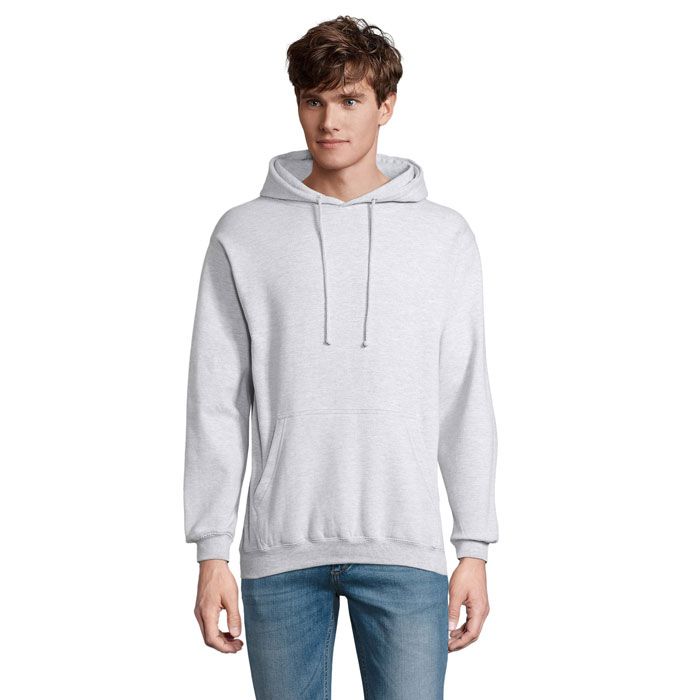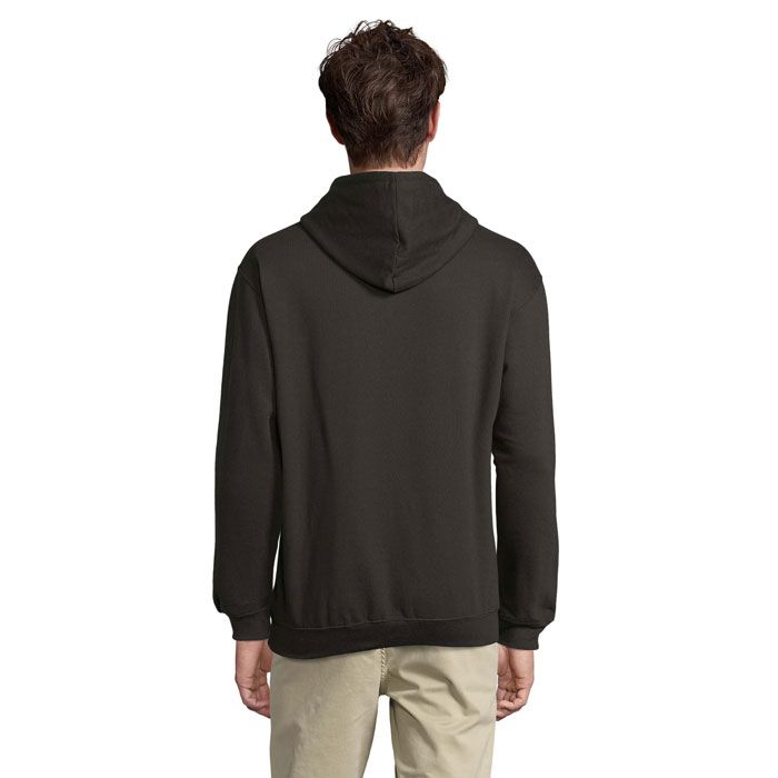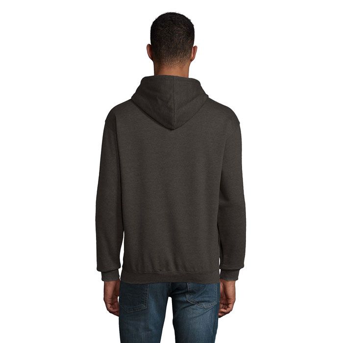 Sol's condor, felpa con cappuccio unisex, 80% cotone - 20% poliestere riciclato certificato grs. Pile spazzolato 280 con maniche a giro, polsini, colletto e orlo a coste 1x1. Tasca a canguro, cappuccio foderato con coulisse tono su tono e occhielli in metallo. Per la corrispondenza delle taglie, consultare la tabella delle taglie nella sezione documentazione del prodotto.