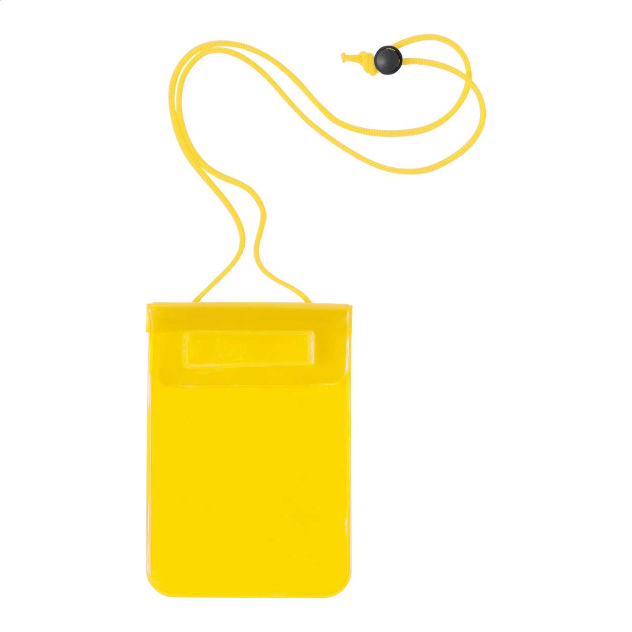 Custodia impermeabile per cellulare in plastica colorata, con laccino da collo. Ideale per cellulari con touch screen.