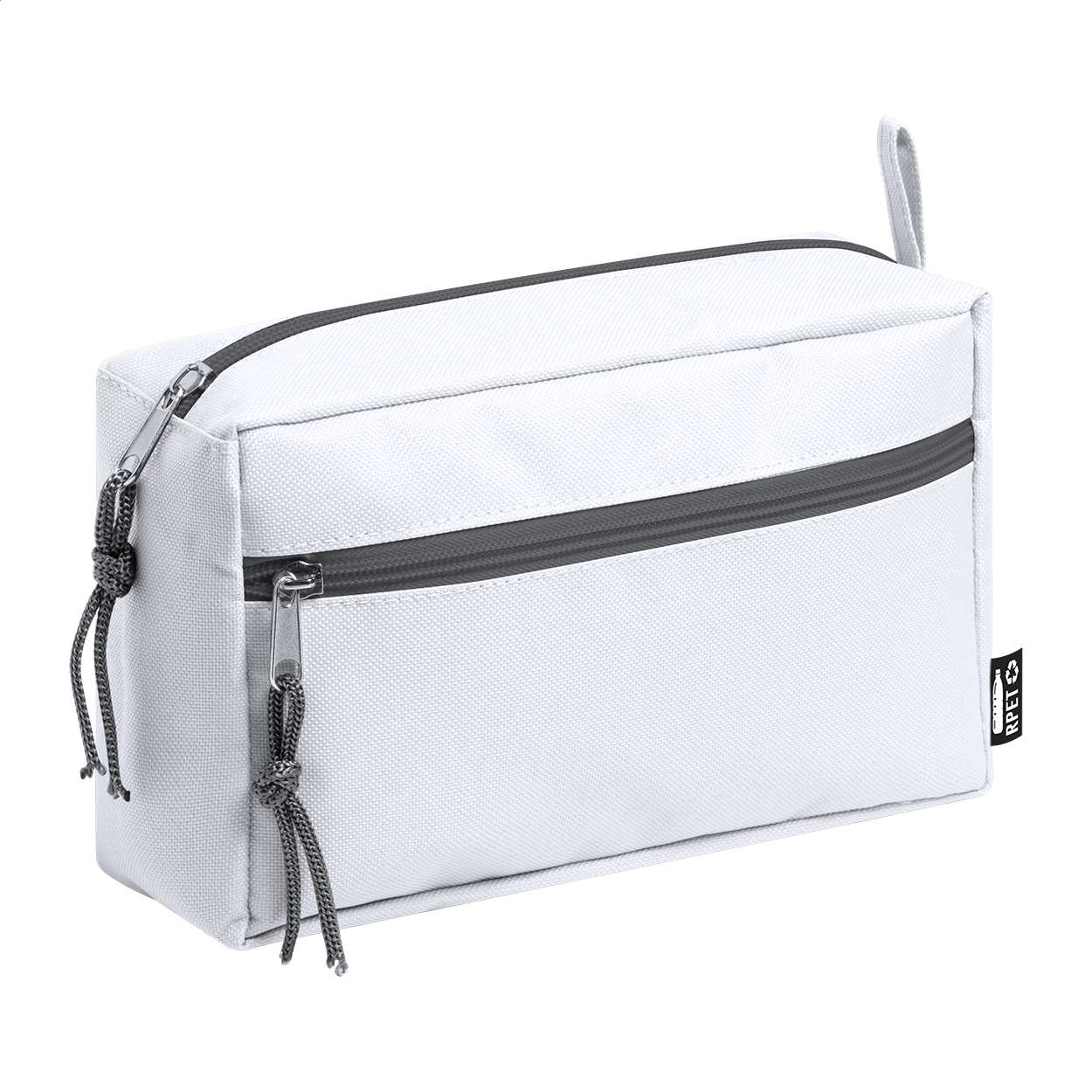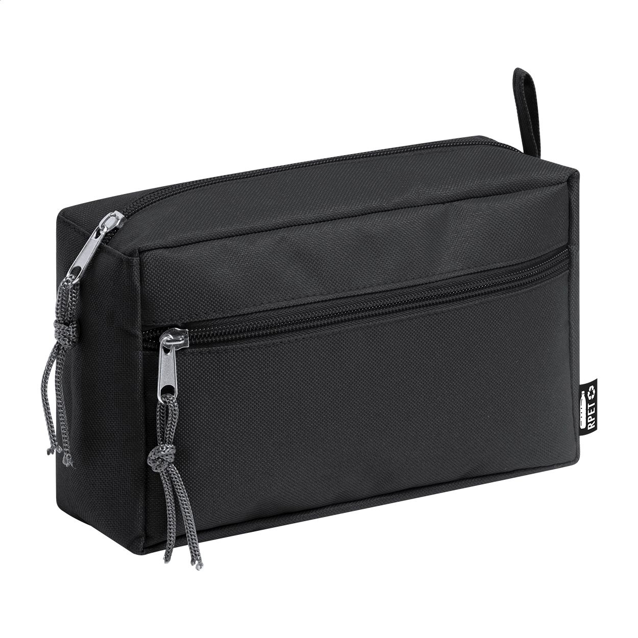 Beauty in poliestere 600D RPET a due scomparti con zip. Con etichetta RPET.