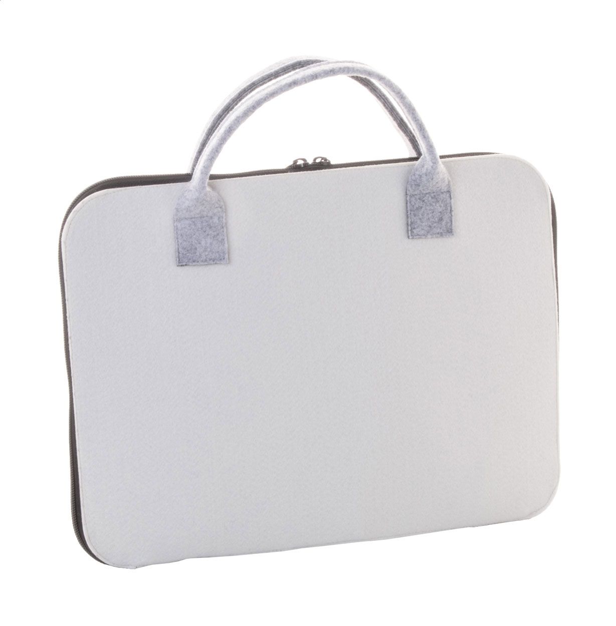 Borsa portadocumenti in feltro RPET, con lato anteriore stampato a colori, scomparto con cerniera ed etichetta RPET. Il costo include la stampa in sublimazione. MOQ: 25 pezzi.