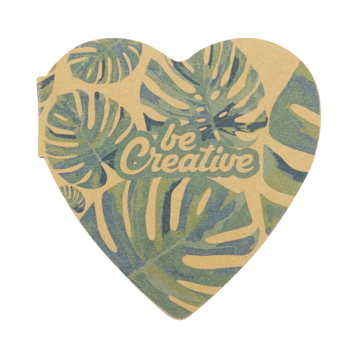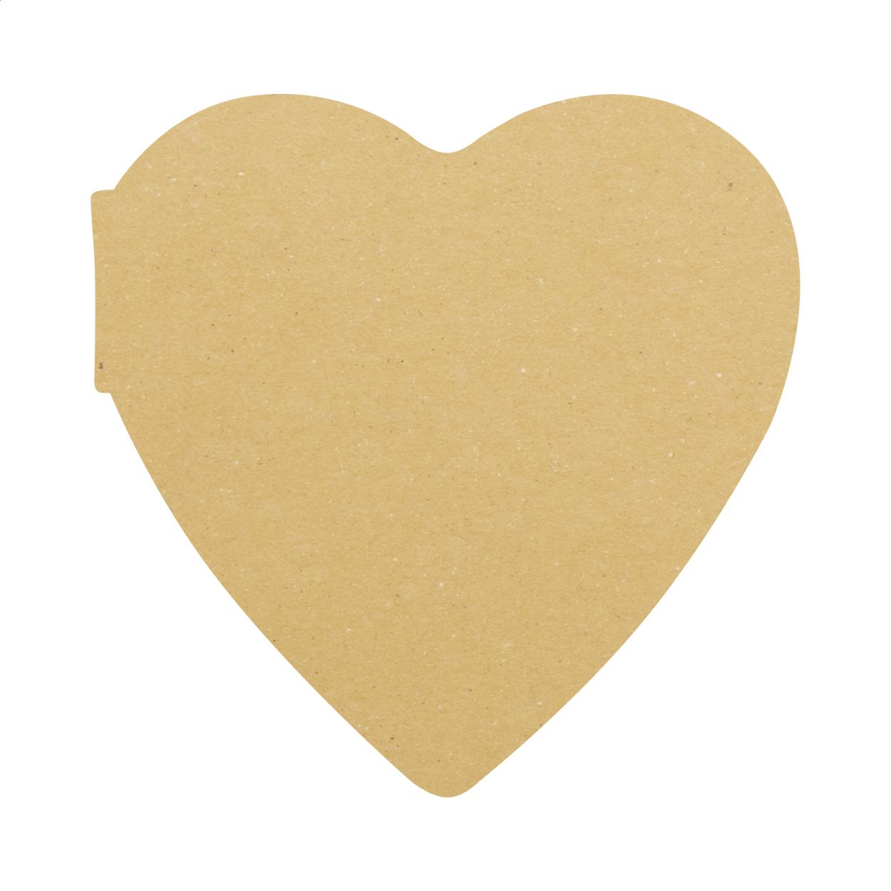 Blocco di 50 foglietti adesivi a forma di cuore con copertina in cartoncino kraft. Il costo comprende la stampa a colori della copertina esterna. MOQ: 100 pezzi.
