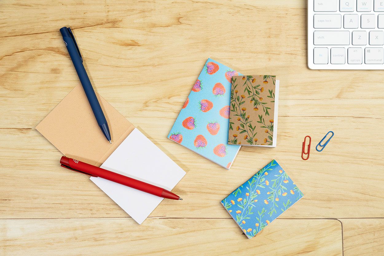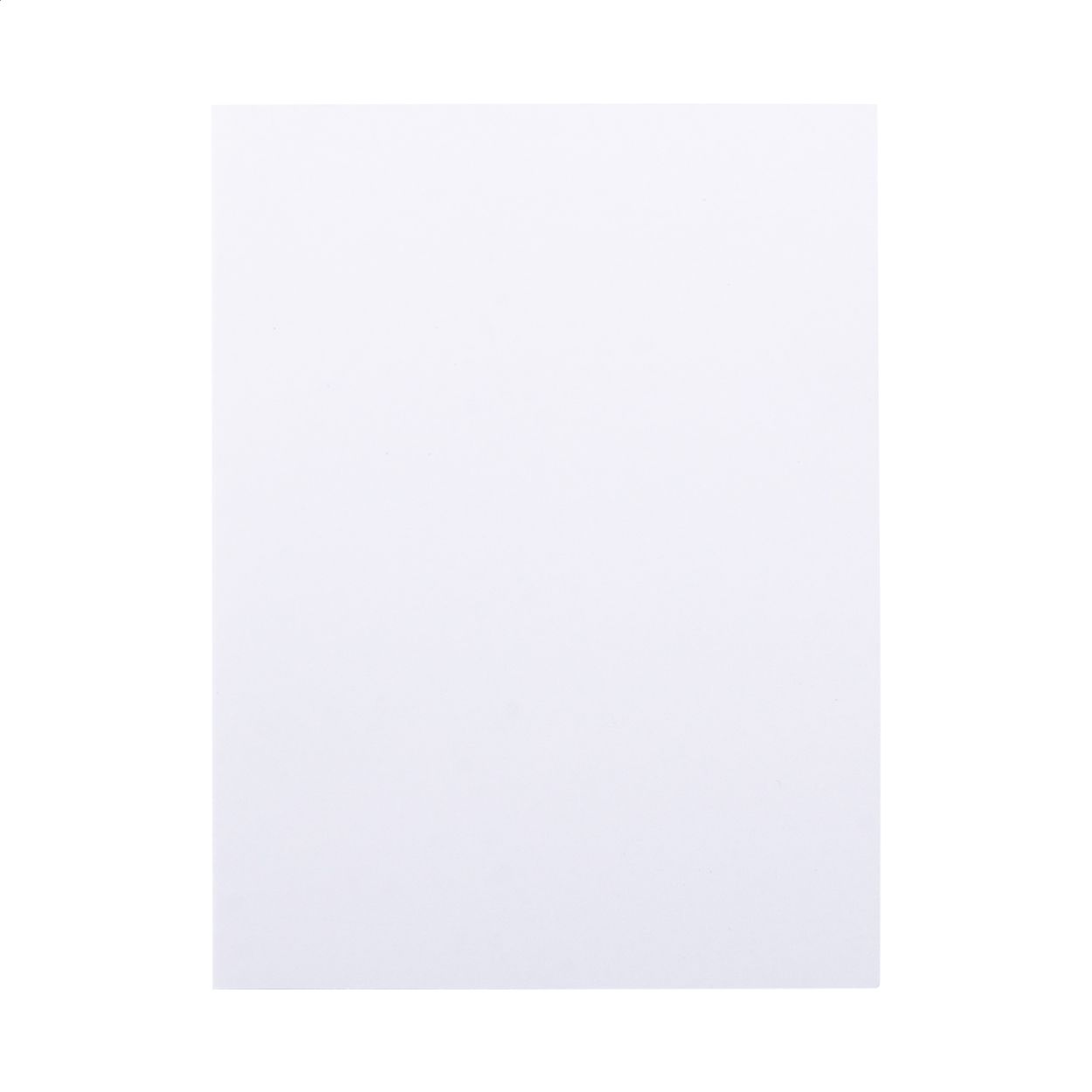 Blocco fogli adesivi e copertina in carta personalizzabile. Include 50 foglietti adesivi in carta riciclata (100x75 mm). Il prezzo include la stampa a colori sull'esterno della copertina. Ordine minimo: 100 pz.