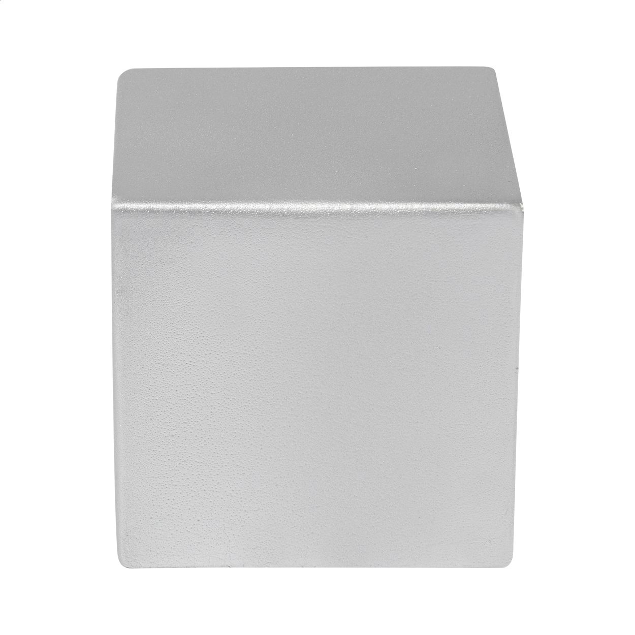 Cubo antistress in schiuma di poliuretano con finitura metallizzata.