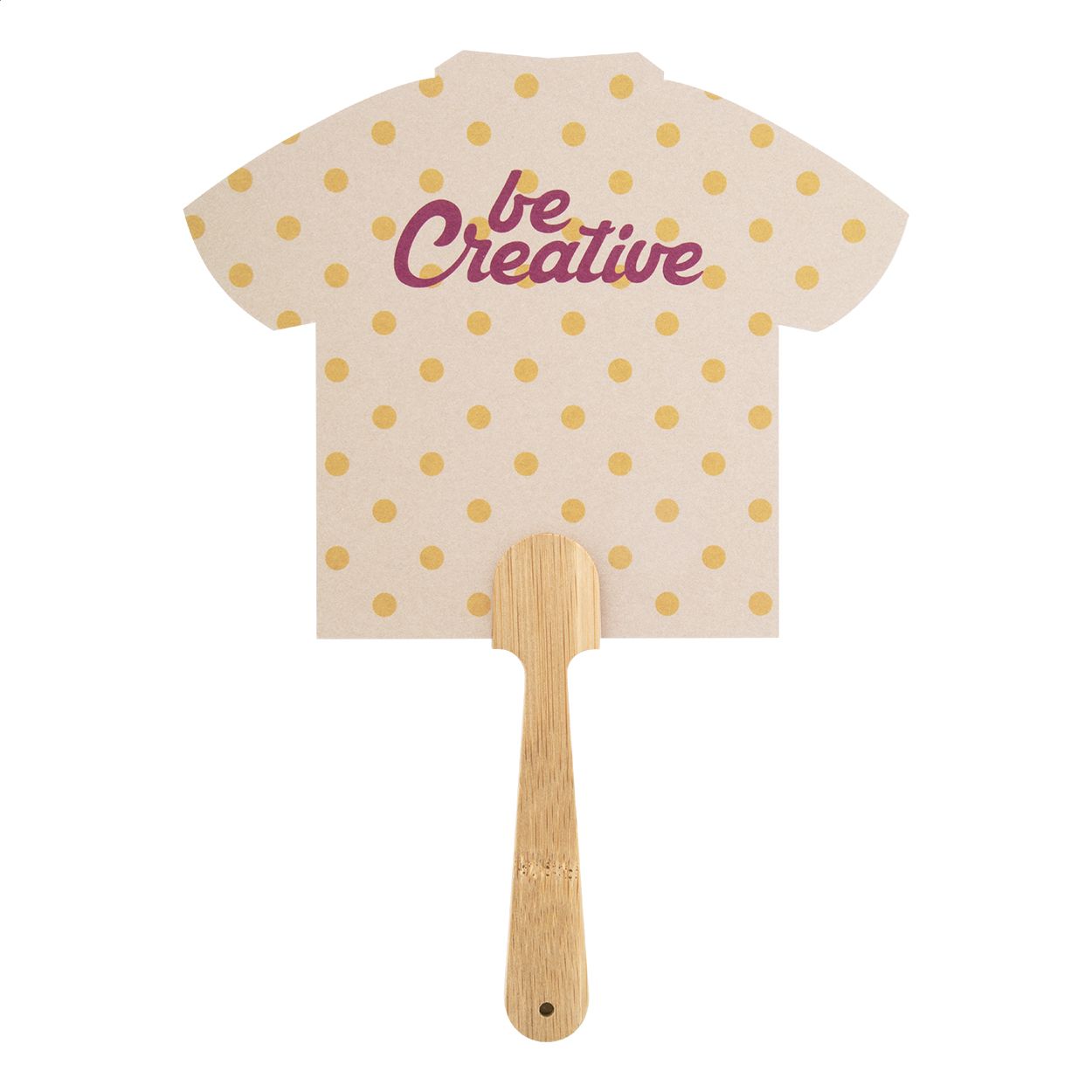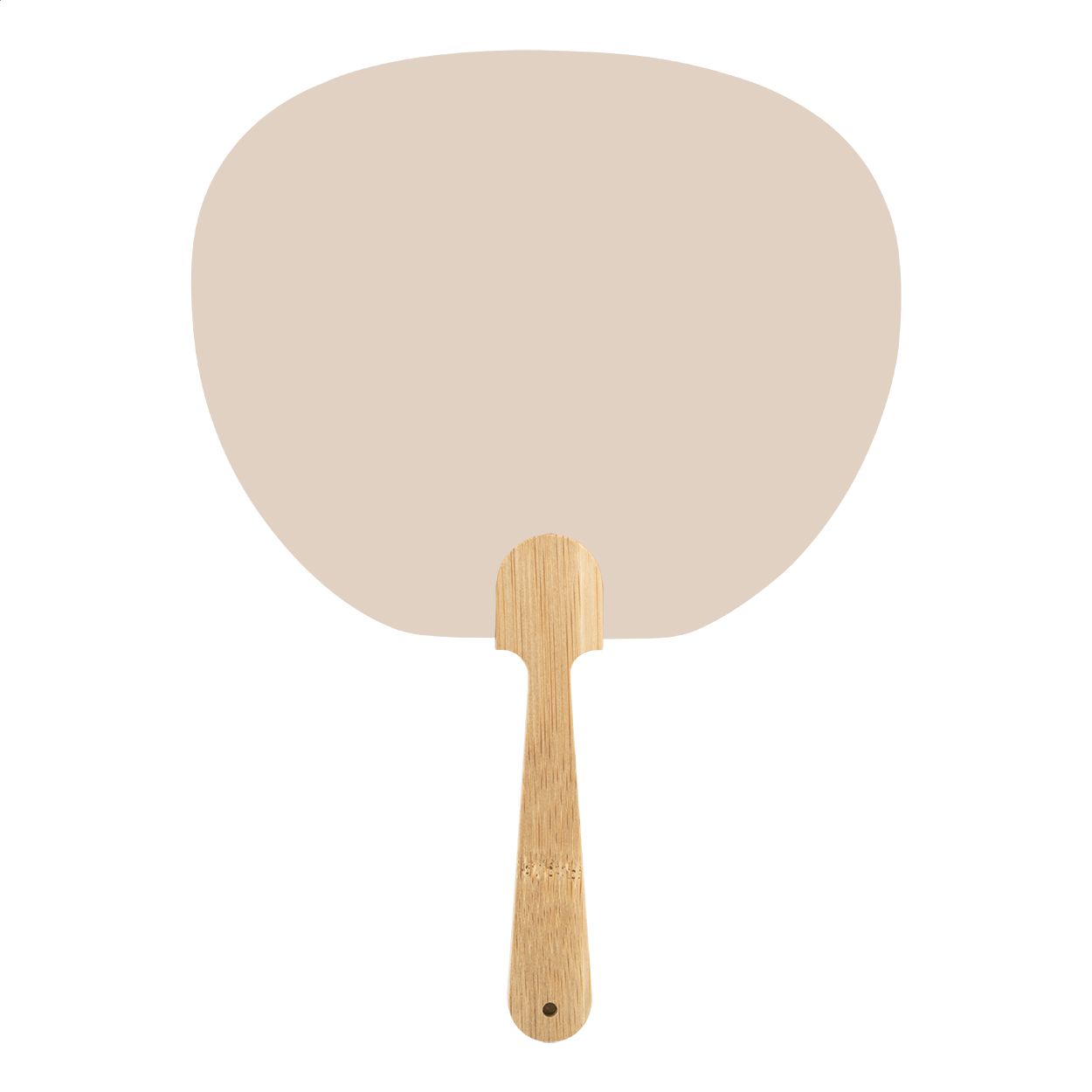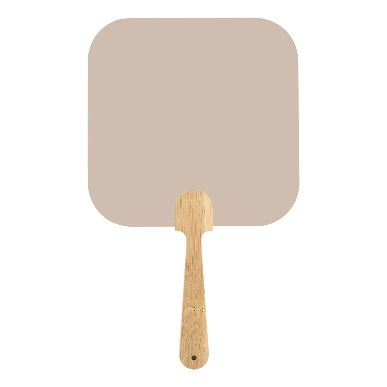 Ventaglio personalizzabile con manico in bambù e carta kraft. Stampa digitale personalizzata su entrambi i lati. MOQ: 100 pz.