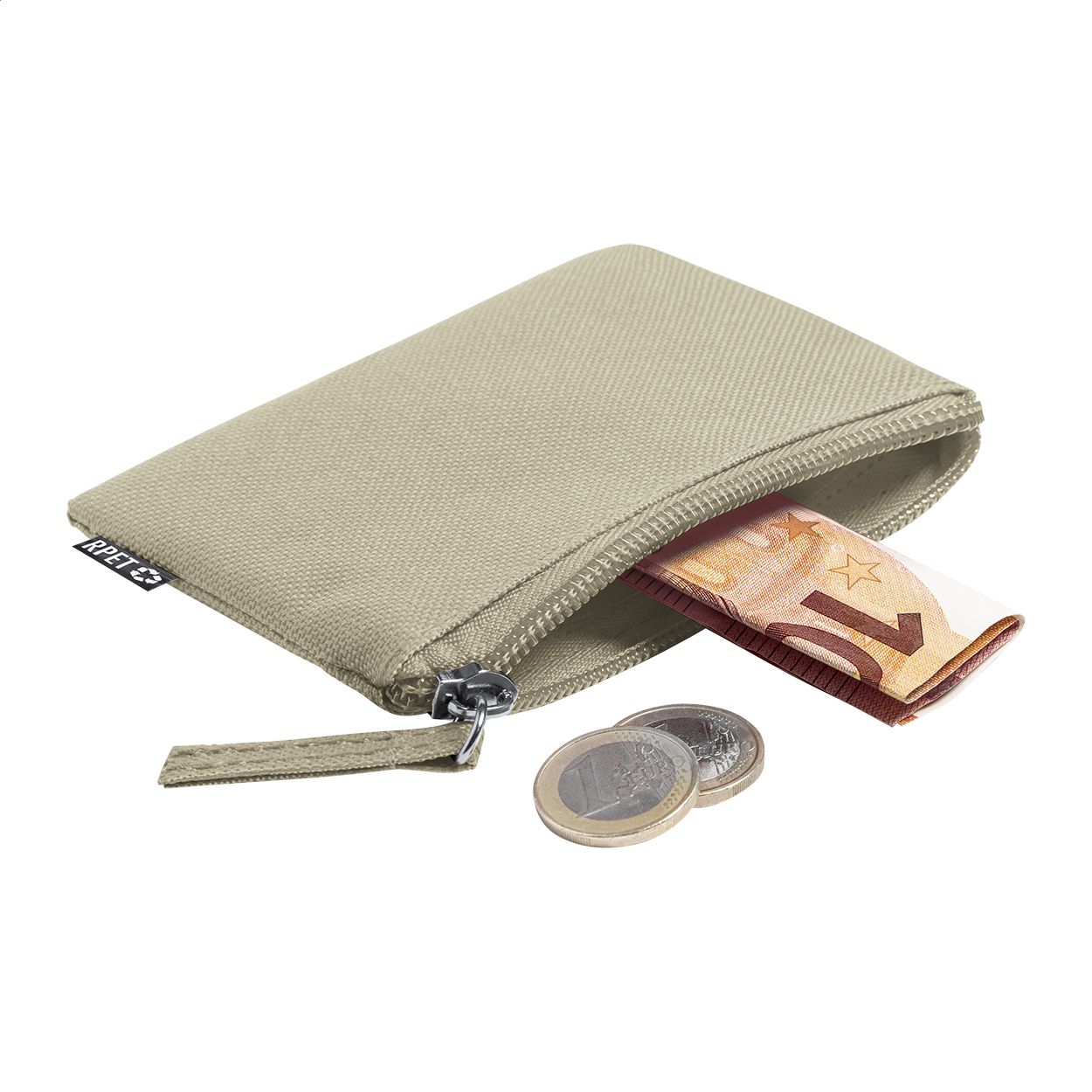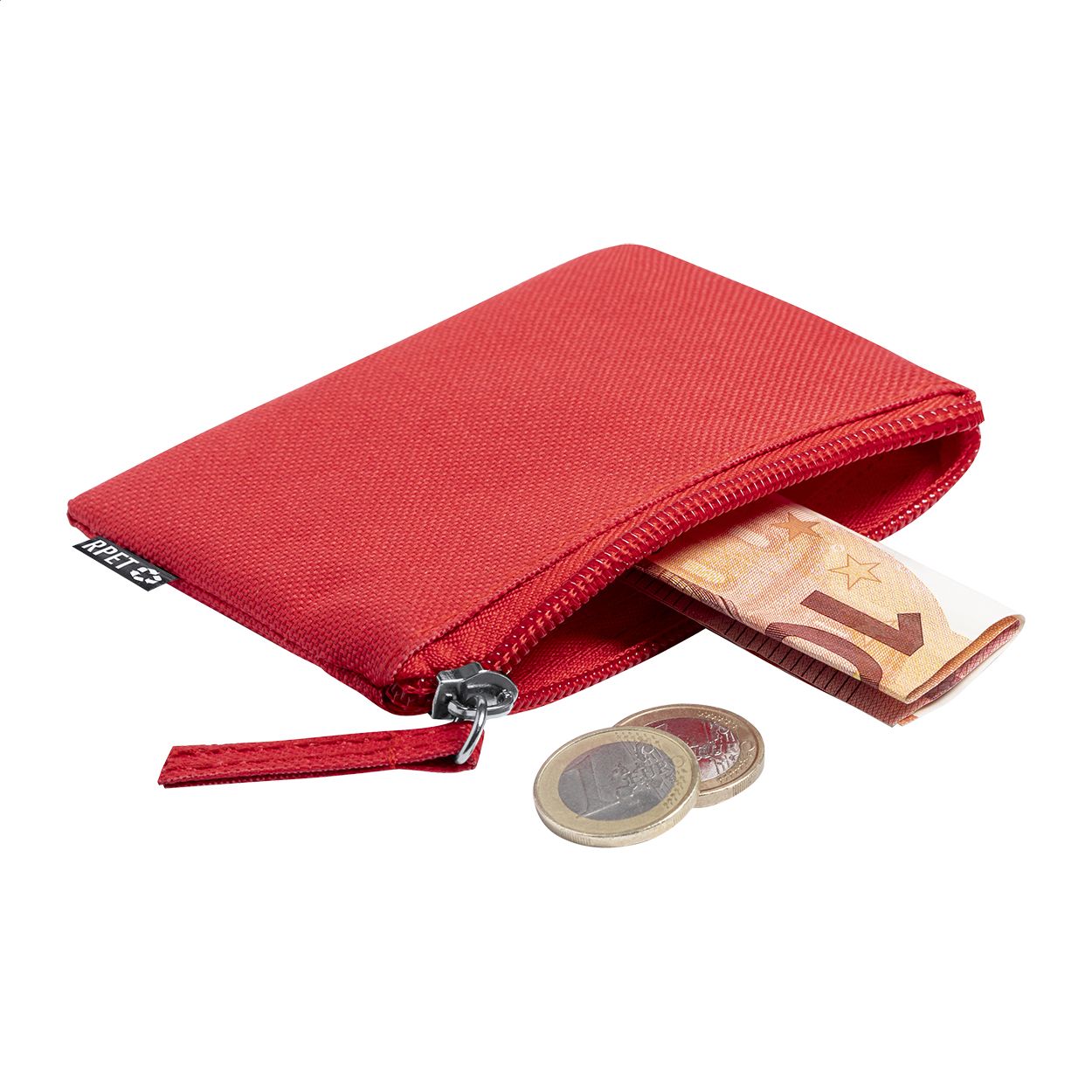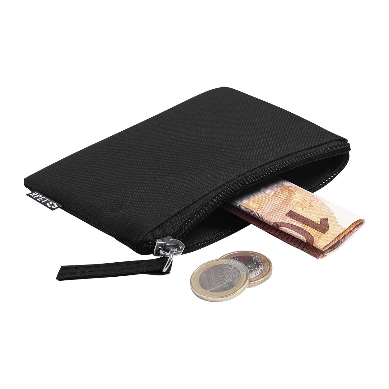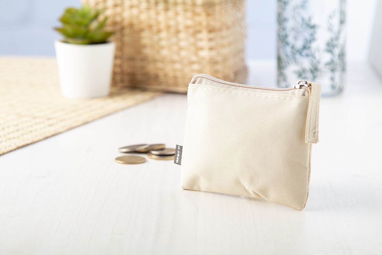 Portamonete in poliestere RPET 600D con etichetta RPET.