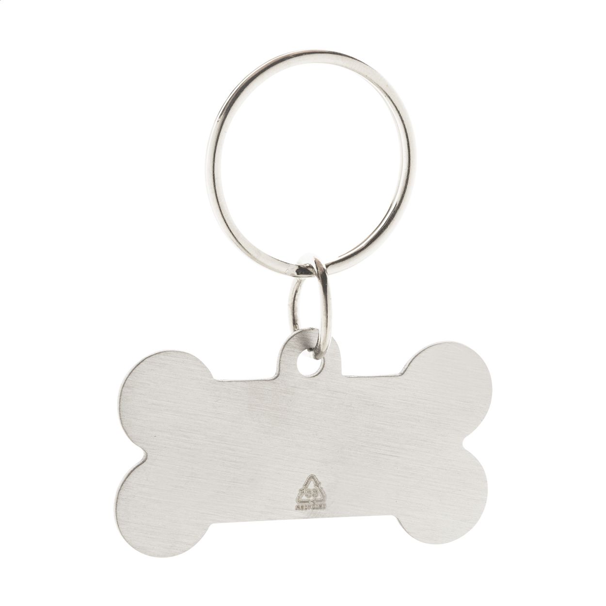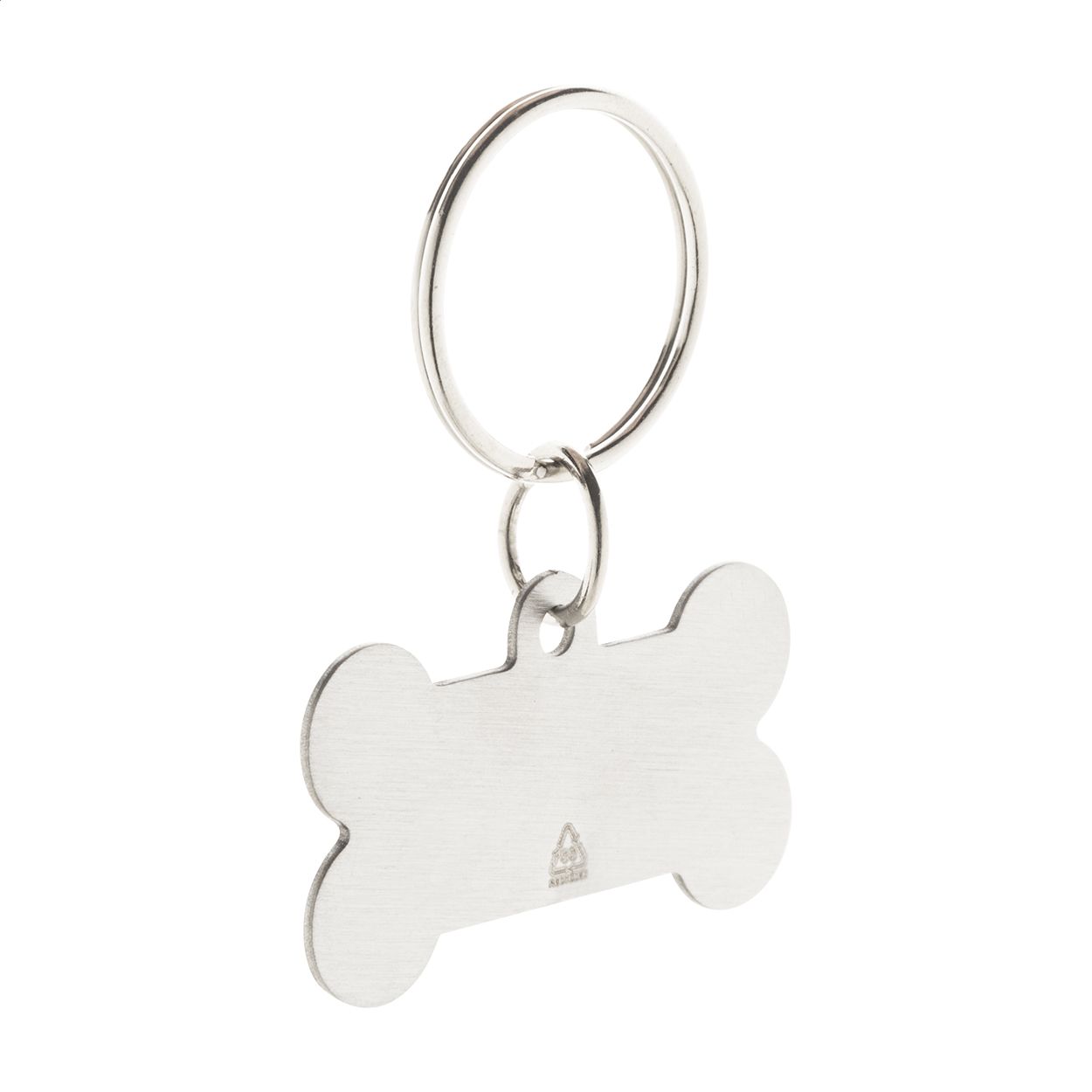 Medaglietta in acciaio riciclato a forma di osso per cani, con portachiavi