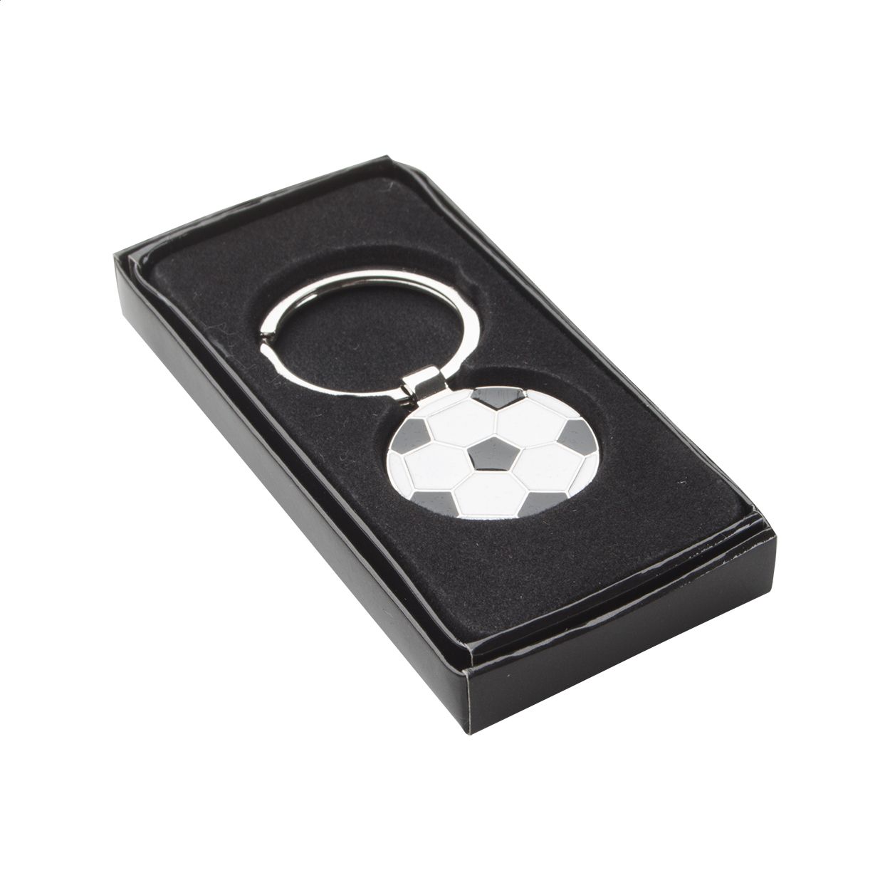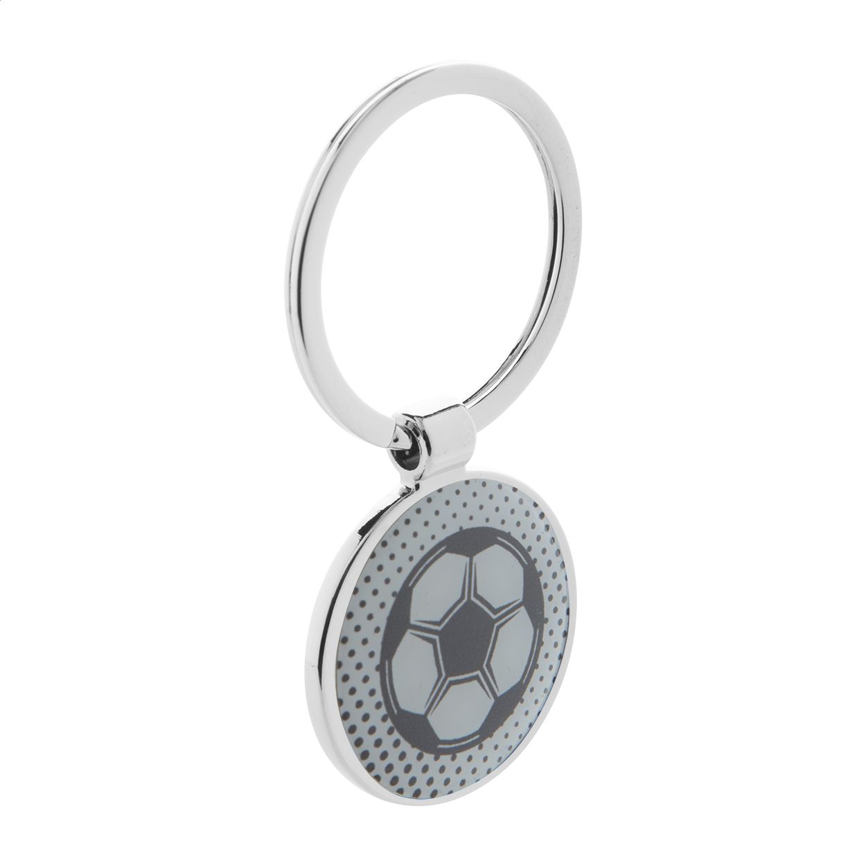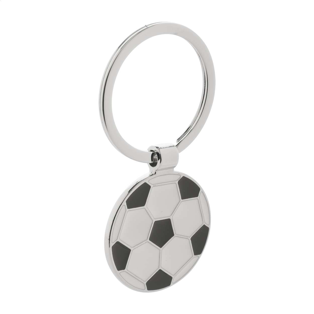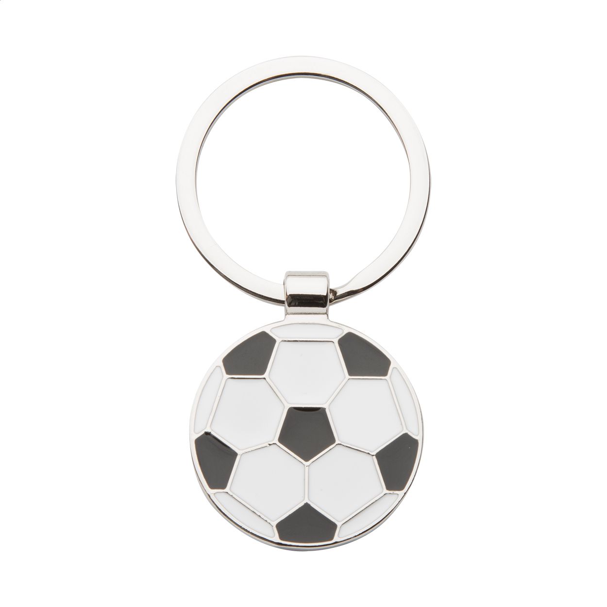 Portachiavi in metallo a forma di palla da calcio.
