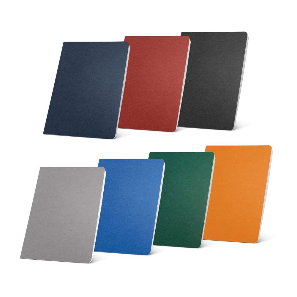 Block notes A5 con 80 pagine a righe (70 g/m²), in 100% di carta riciclata, e copertina flessibile in 100% di carta riciclata. 140 x 210 mm