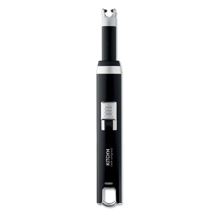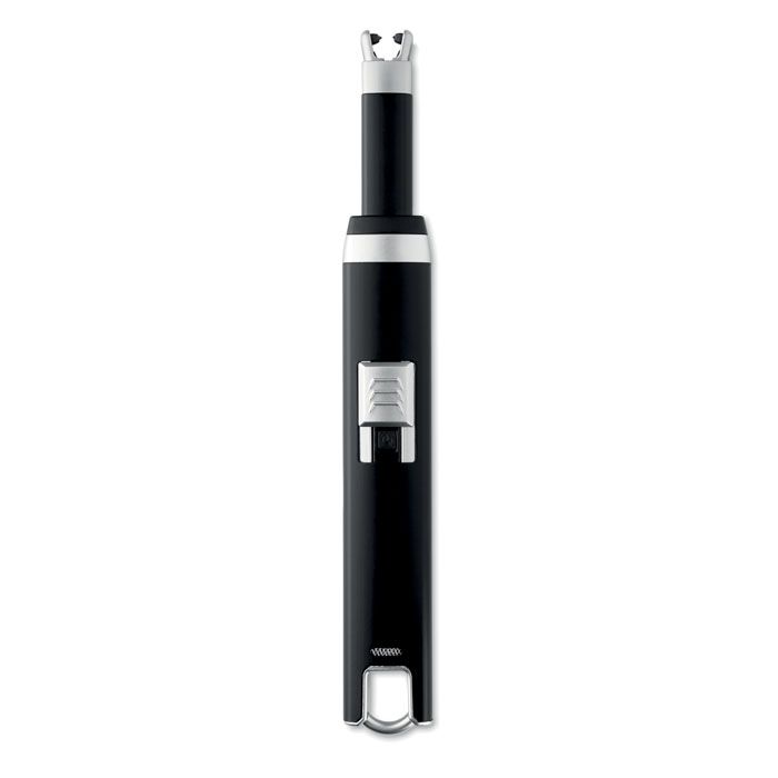 Accendino ricaricabile USB con fiamma ad arco singolo. Batteria agli ioni di litio da 220 mAh. Compreso cavo di ricarica USB.