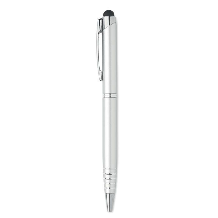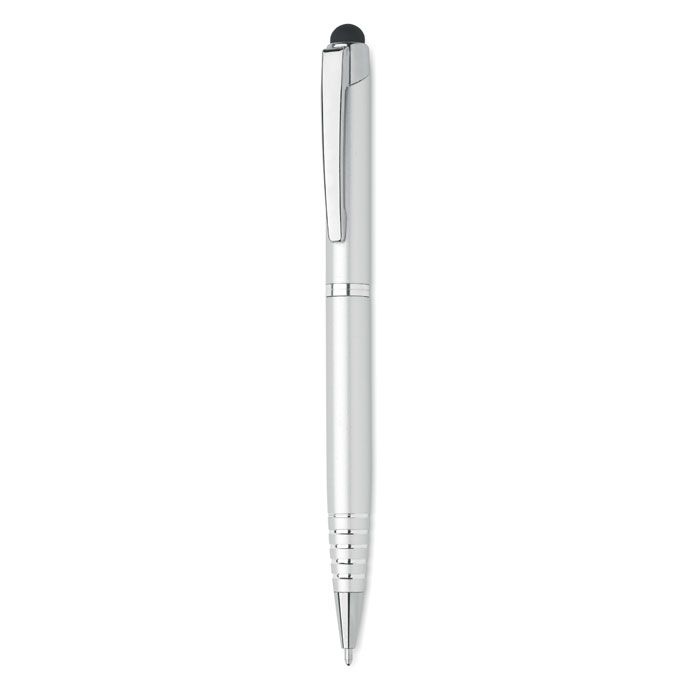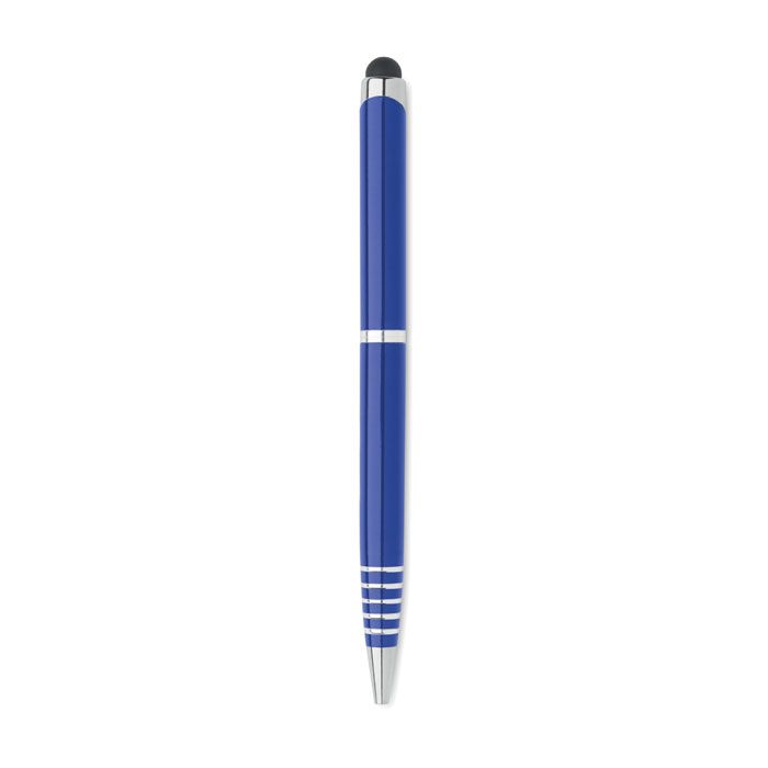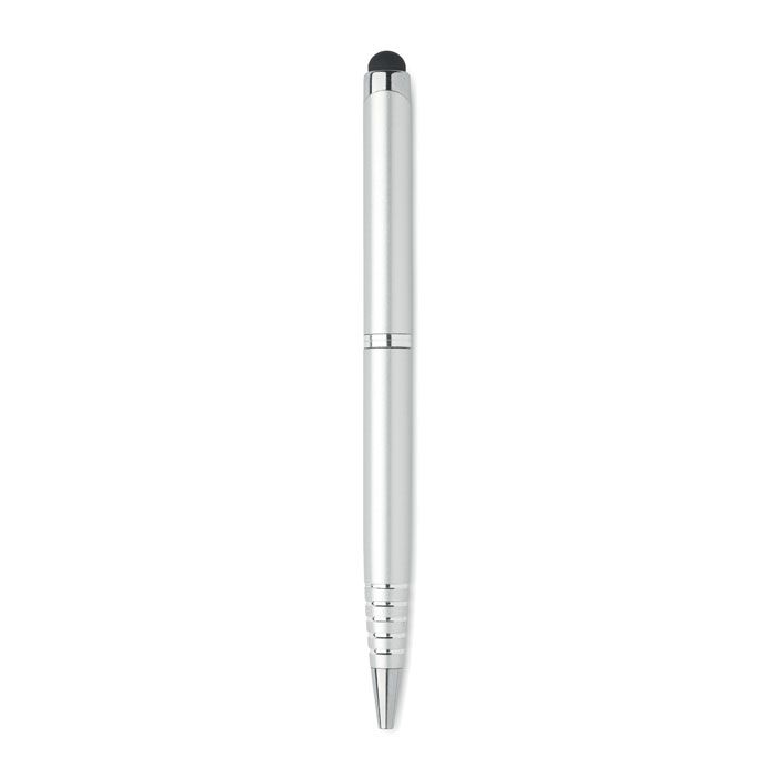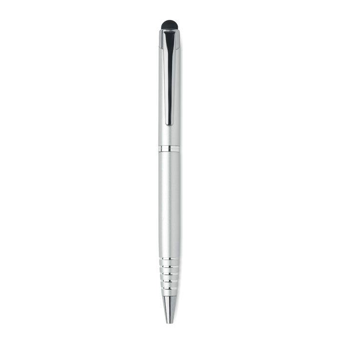 Penna a sfera a rotazione in alluminio riciclato con stilo. Inchiostro blu.