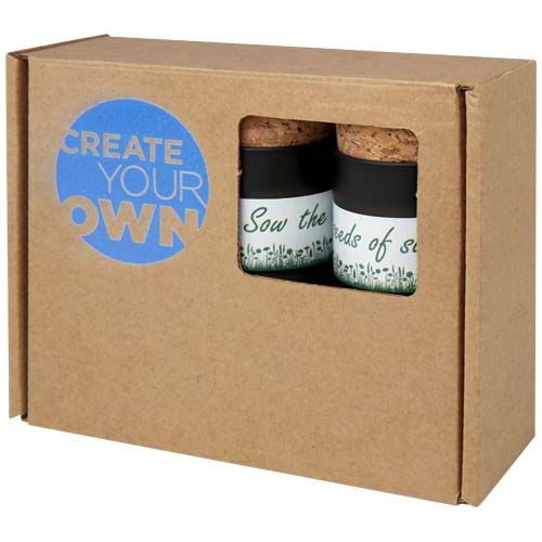 Questo set per giardino da scrivania contiene tre vasi da coltivazione in alluminio spazzolato riciclato. Include innovative palline di semi che germogliano in 1-2 settimane, contenenti un mix di erbe (erba cipollina, basilico, prezzemolo, aneto e maggiorana). Ogni vaso comprende un tappo di sughero, istruzioni per la coltivazione e dischi di terriccio biologico. Una volta che le piante sono cresciute, il vaso può essere riutilizzato per una nuova pianta, come contenitore oppure può essere riciclato. Fornito in una confezione regalo, che può anche essere stampata. Realizzato in Europa.