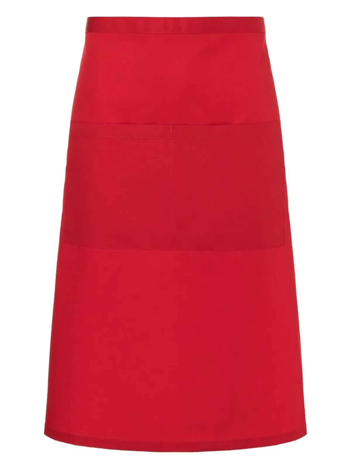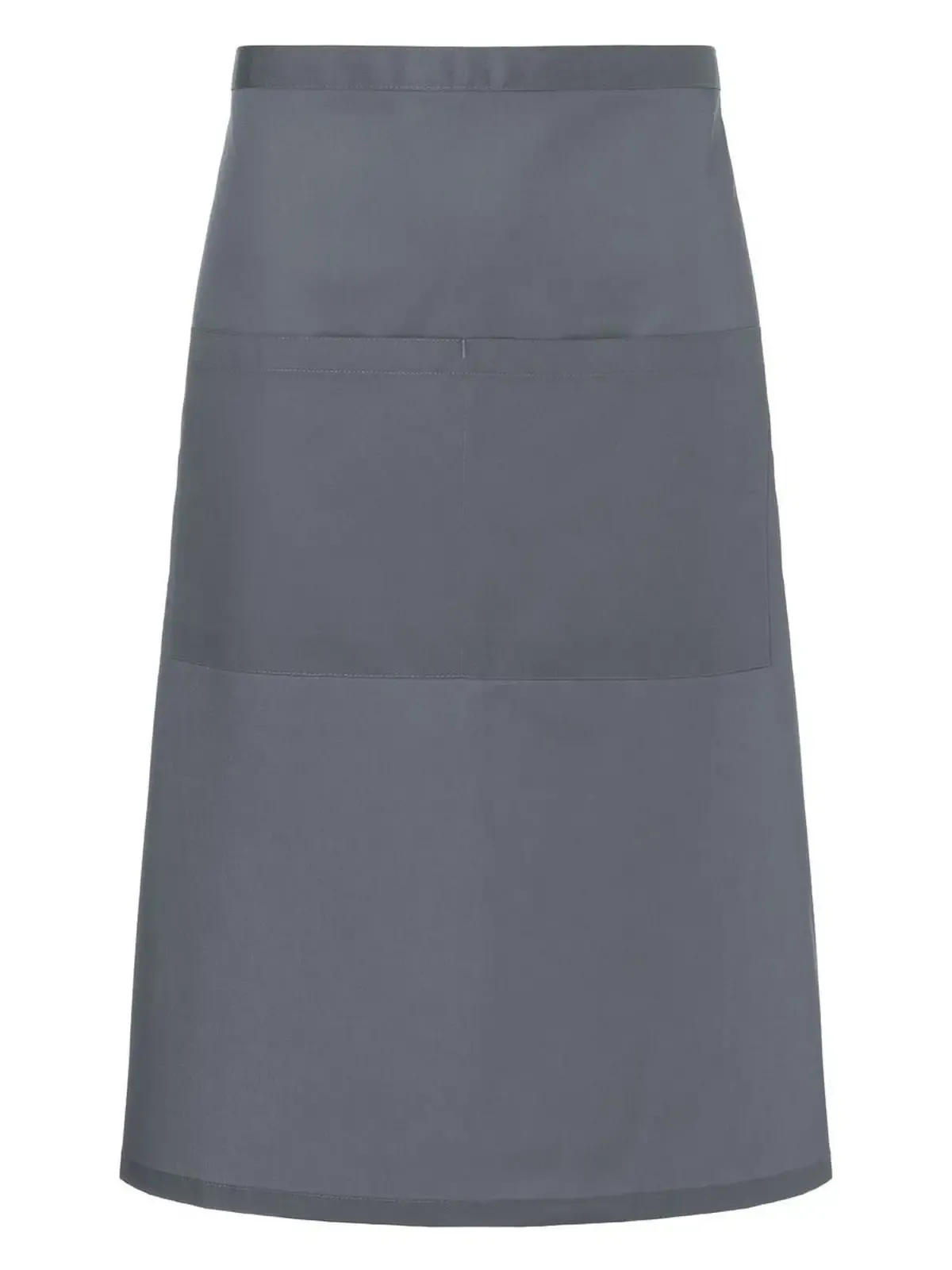 65% poliestere, 35% cotone. 215 g/m². Grembiule bistrò classico e funzionale con cinta continua in stoffa - ulteriore resistenza garantita dalla cucitura di rinforzo sulle cinte del grembiule - tasca applicata (40 x 20 cm) con 2 pratici scomparti. Dimensioni: 70 x 70 cm. Lavabile a 60°C.