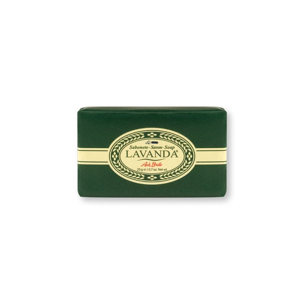 Saponetta a base di sapone vegetale e fragranza di lavanda, dalla consistenza morbida che lascia la pelle profumata. Il suo piccolo formato è ideale da portare nella borsa della palestra o in viaggio. Prodotto tradizionalmente in Portogallo. Unità di 20 g. Confezione classica che conserva il design originale, con il suo sfondo verde decorato da piccoli grafici che rappresentano fiori di lavanda. 59 x 34 x 10 mm