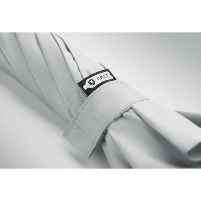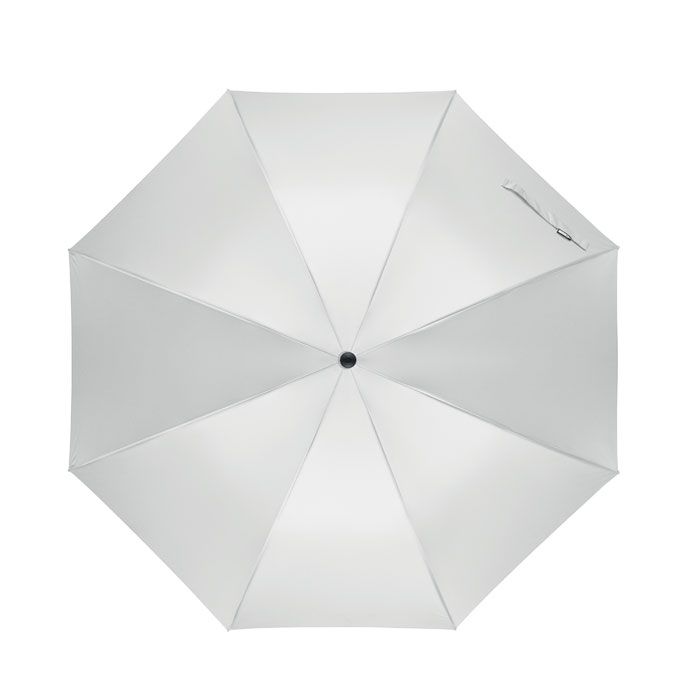 Ombrello antivento ad apertura automatica da 27 pollici in pongee RPET 190T. Stelo e nervature in fibra di vetro. Manico in fibra di grano e ABS riciclata. Punte e sommità in plastica.
